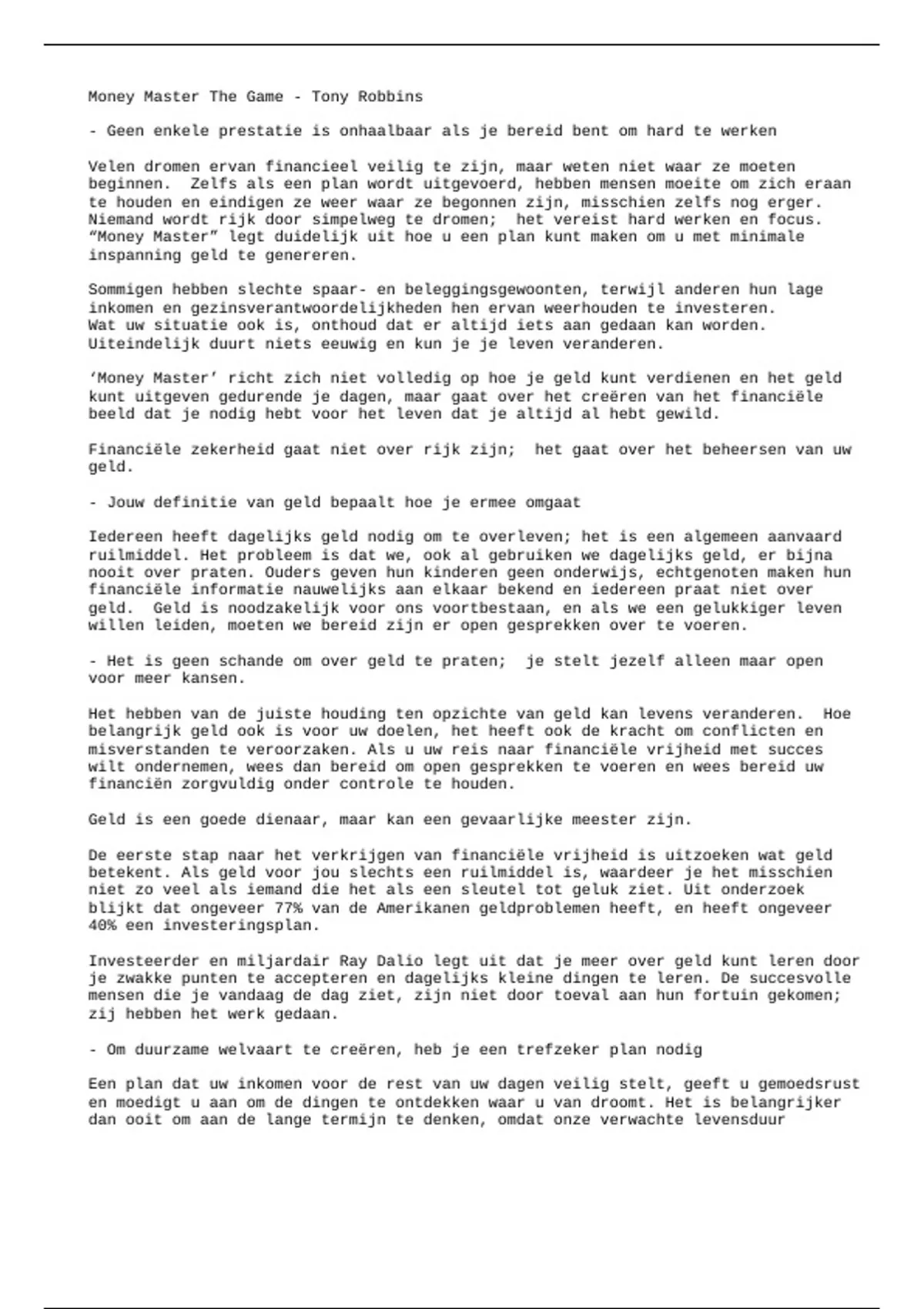 misverstanden te veroorzaken. Als u uw reis naar financiële vrijheid met succes
