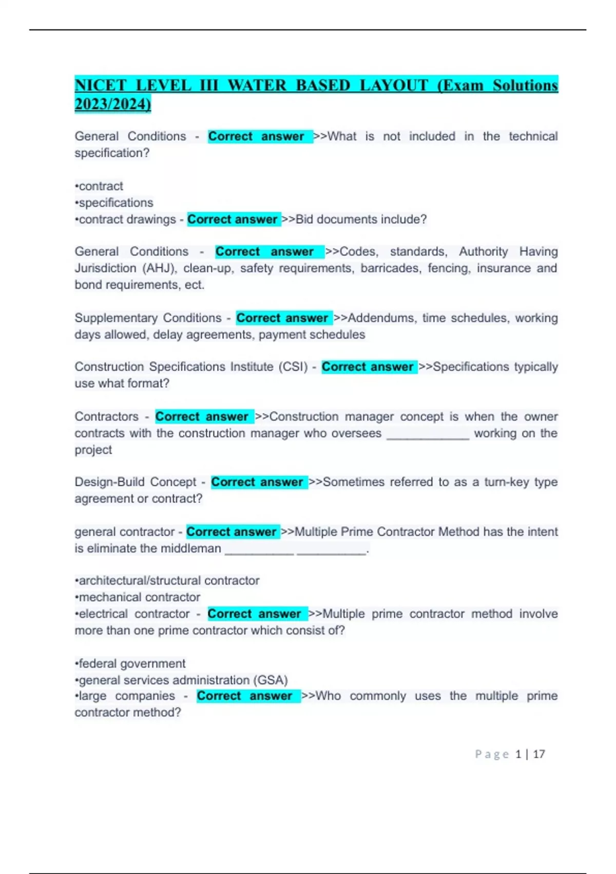 nicet level iii water based layout exam solutions