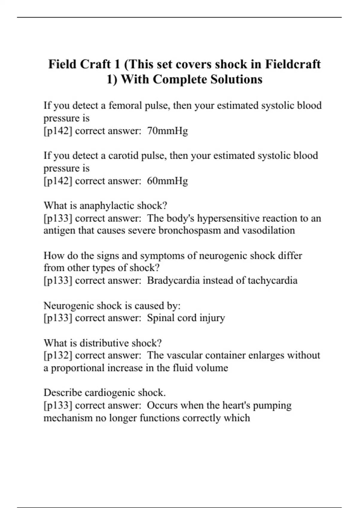 Field Craft 1 (This set covers shock in Fieldcraft 1) With Complete Solutions