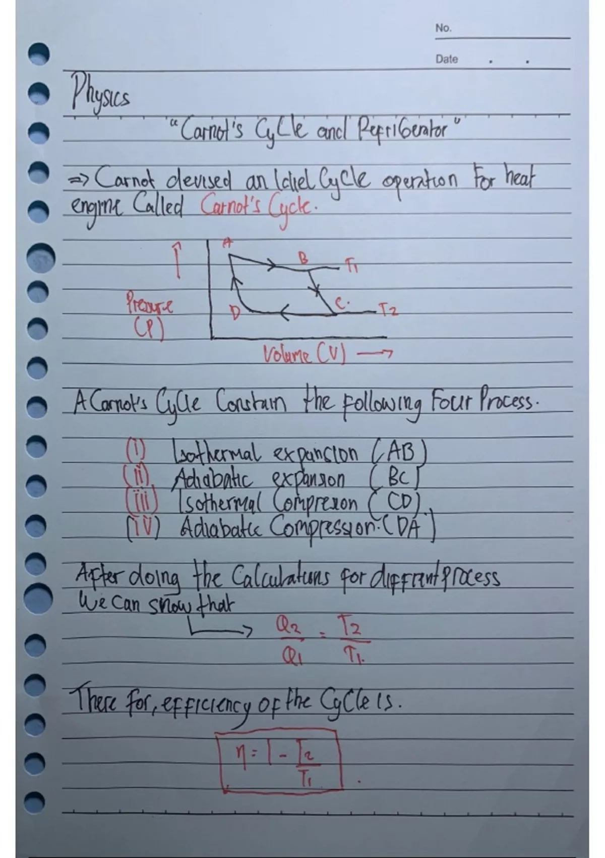 Summary Carnot's Cycle And Refrigerator