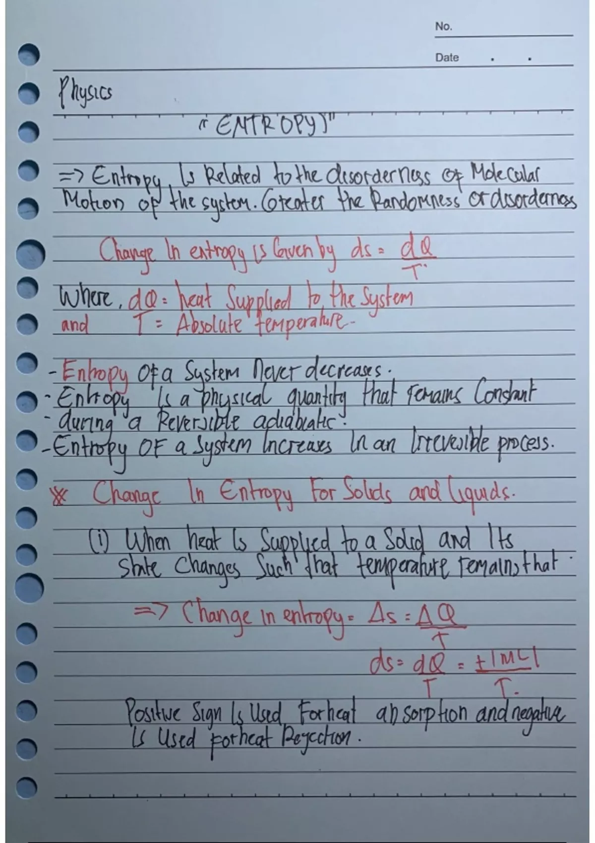 Lecture notes of 2 pages for the course IGCSE Physics at Cambridge College (Entropy)