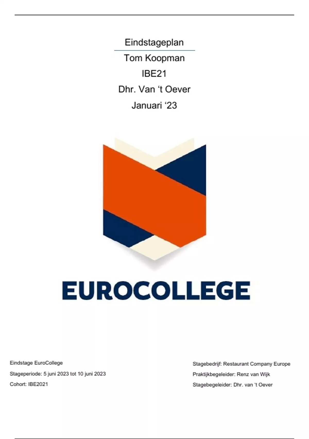 Cohort: IBE2021 Stagebegeleider: Dhr. van ‘t Oever