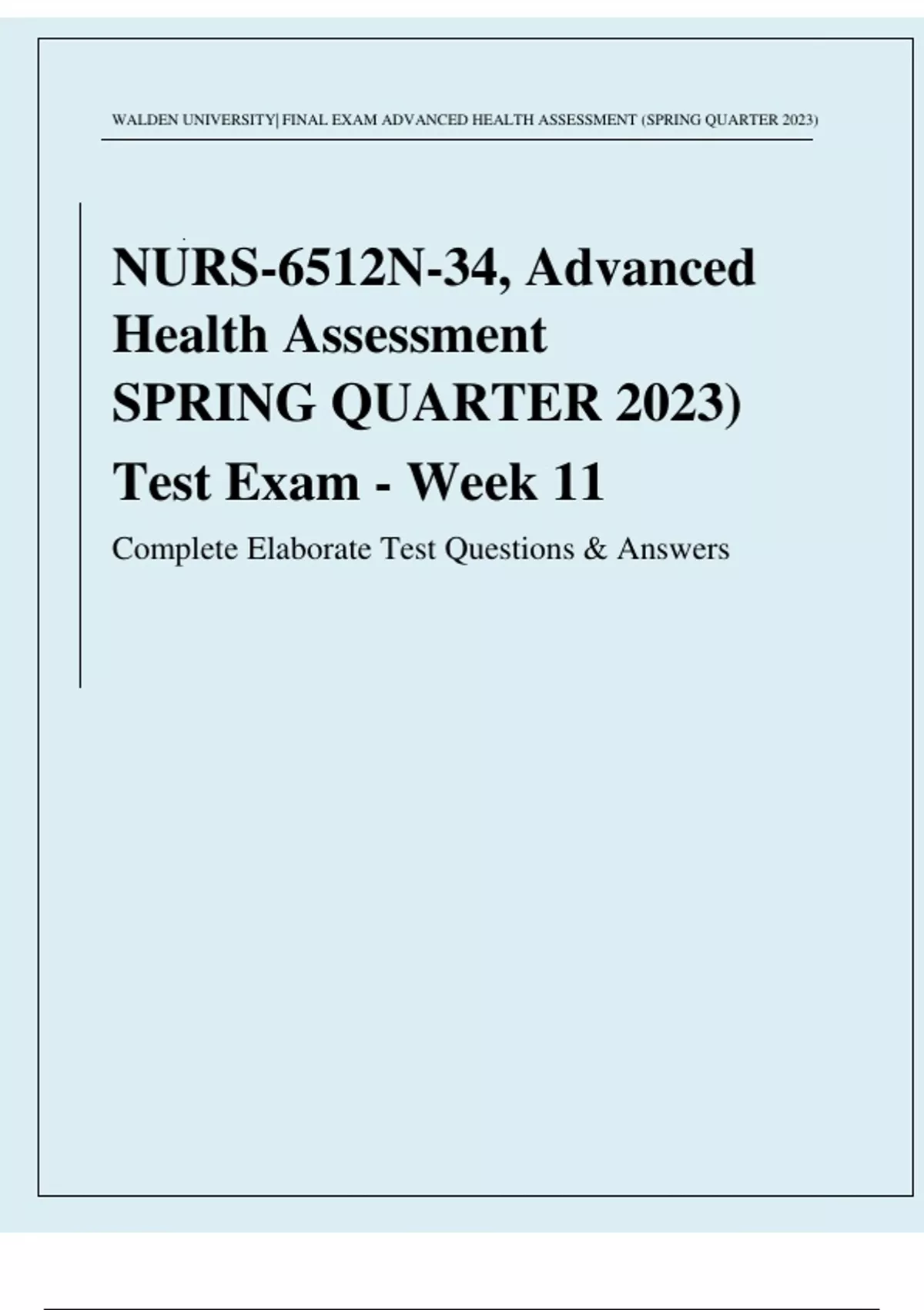 NURS-6512N-34, Advanced Health Assessment SPRING QUARTER 2023) Test Exam - Week 11 Complete Elaborate Test Questions & Answers