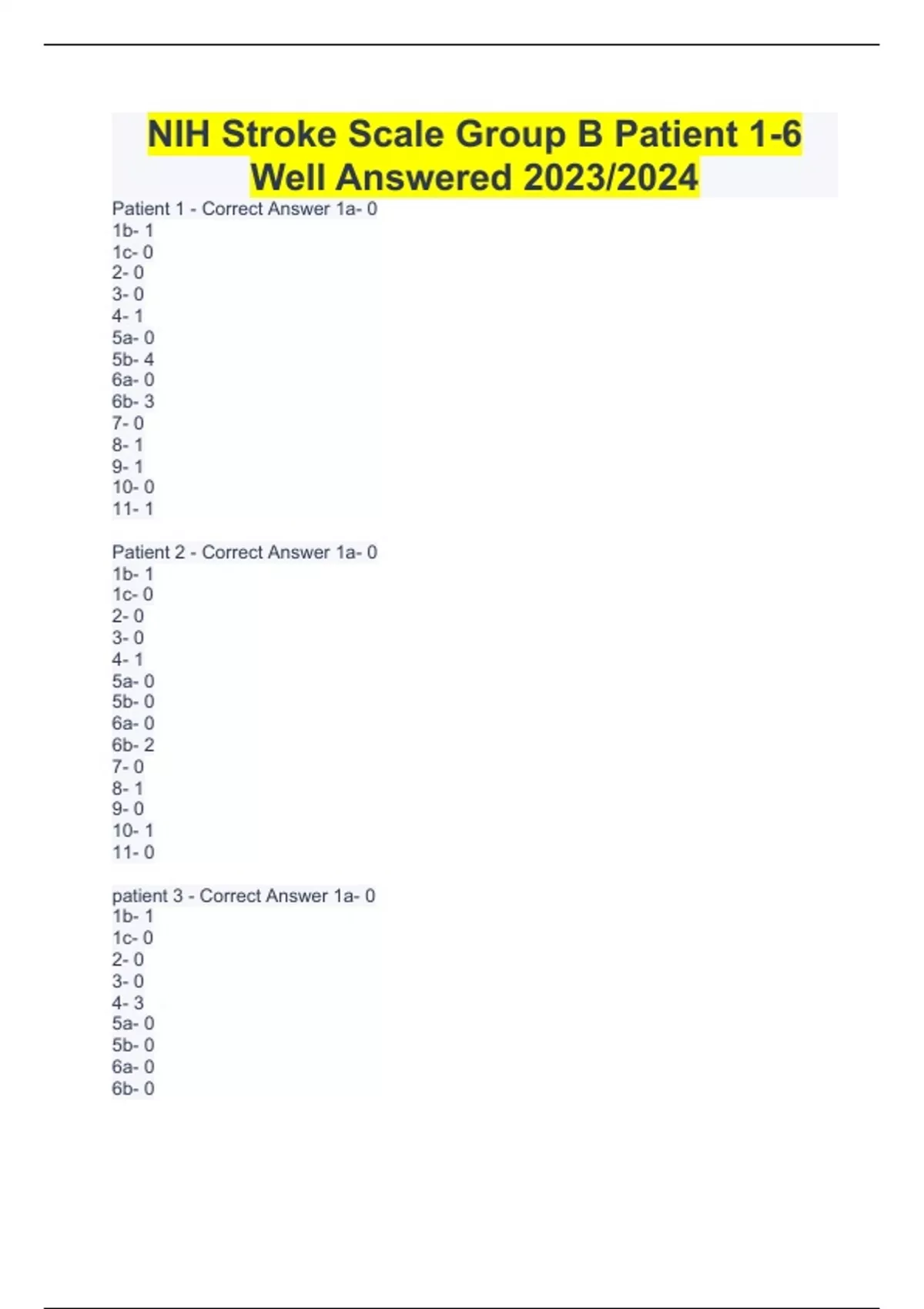 NIH Stroke Scale Group B Patient 1-6 Well Answered 2023/2024