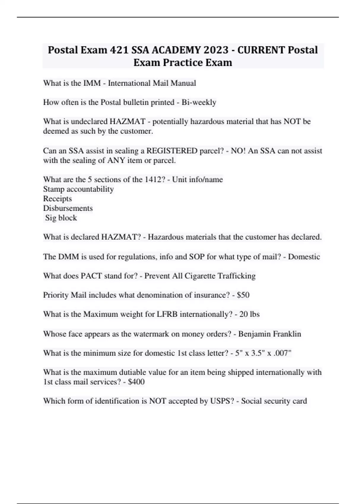 Postal Exam 421 SSA ACADEMY 2023 - CURRENT Postal Exam Practice Exam