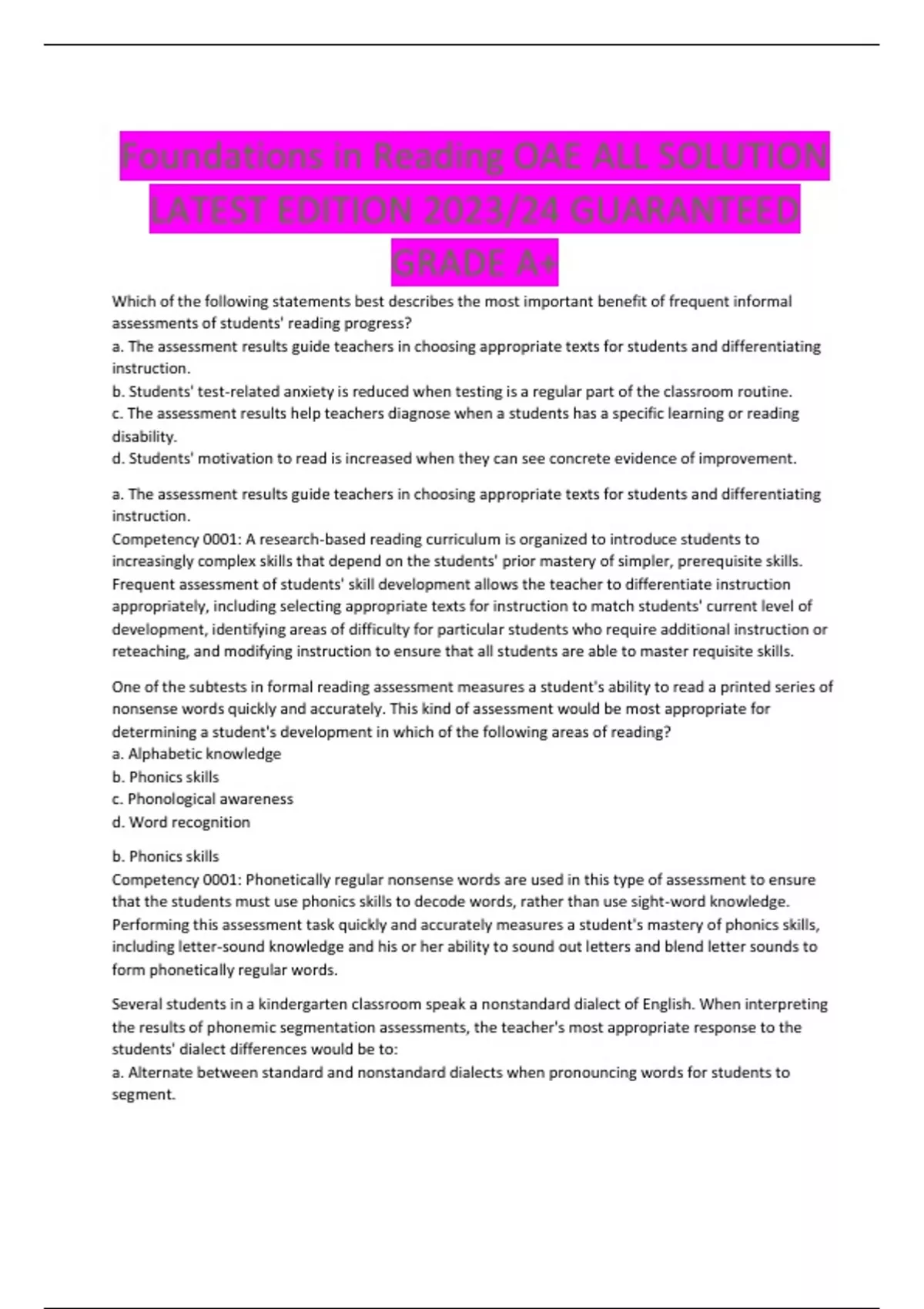 Foundations in Reading OAE ALL SOLUTION LATEST EDITION 2023/24 GUARANTEED GRADE A+
