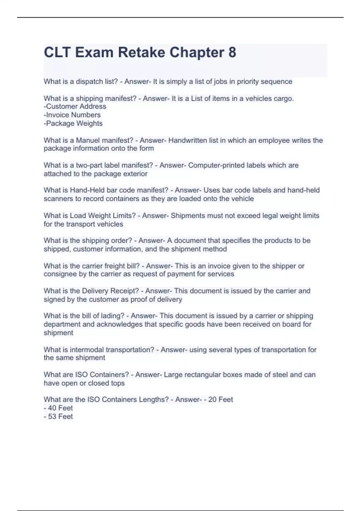 clt exam retake chapter 8 questions and answers