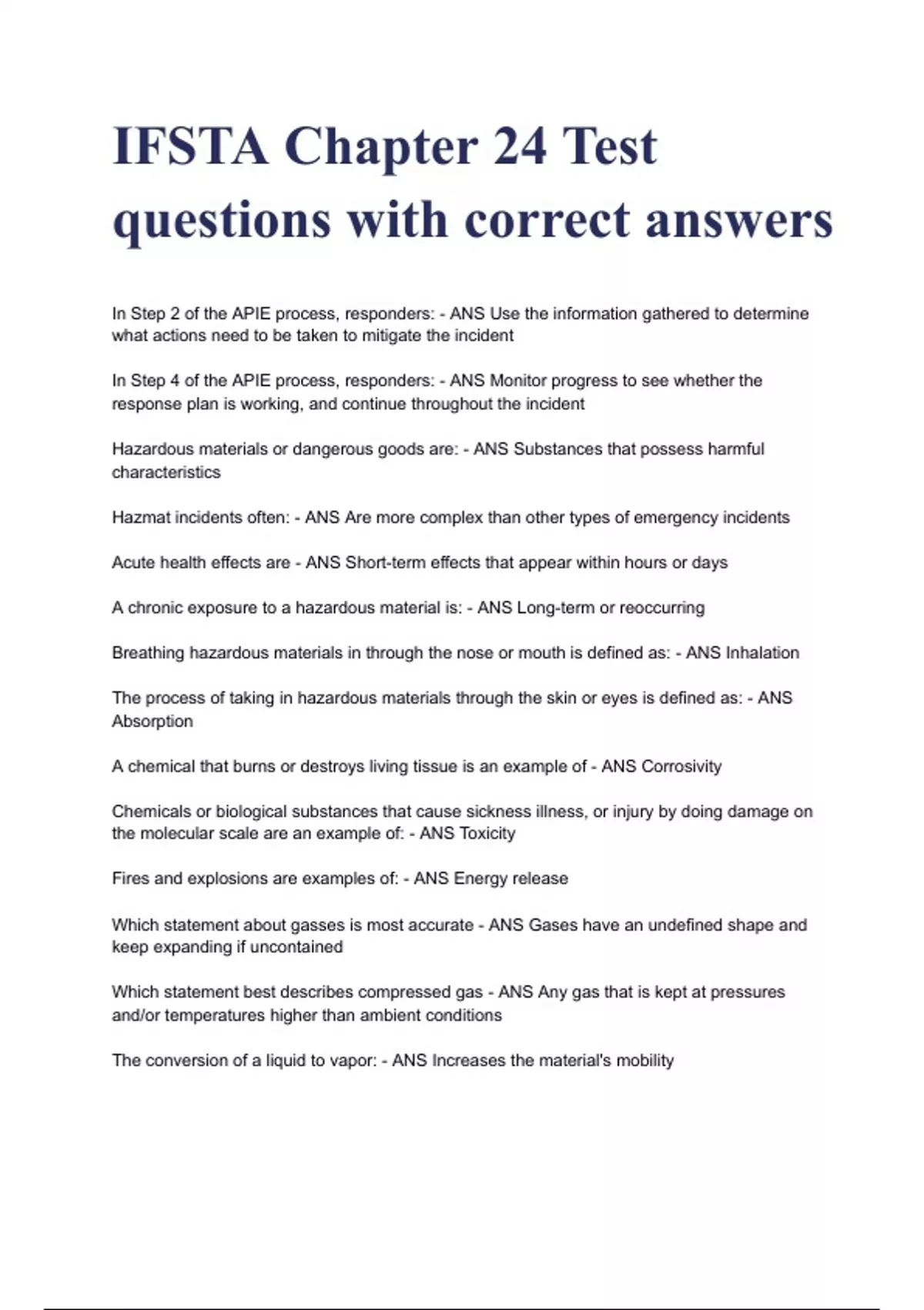 IFSTA Chapter 24 Test questions with correct answers( A+ GRADED 100% VERIFIED)