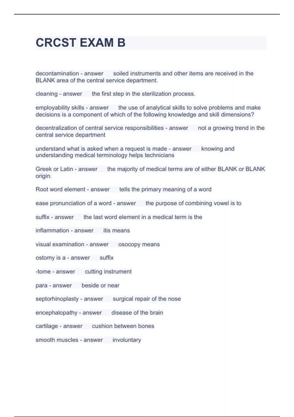 Exam of 12 pages for the course CRCST at CRCST (CRCST EXAM B)