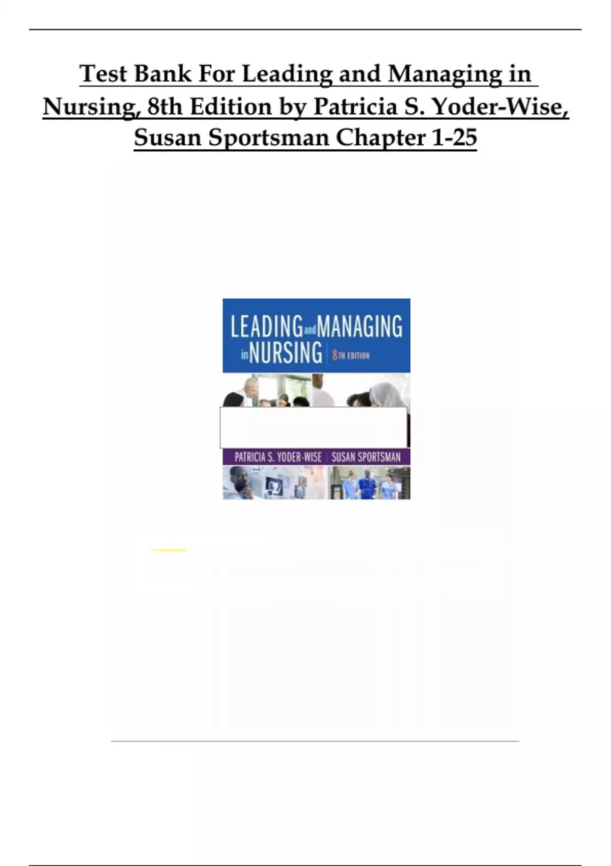 Leading And Managing In Nursing 8th Edition Yoder Wise Test Bank , All Chapters