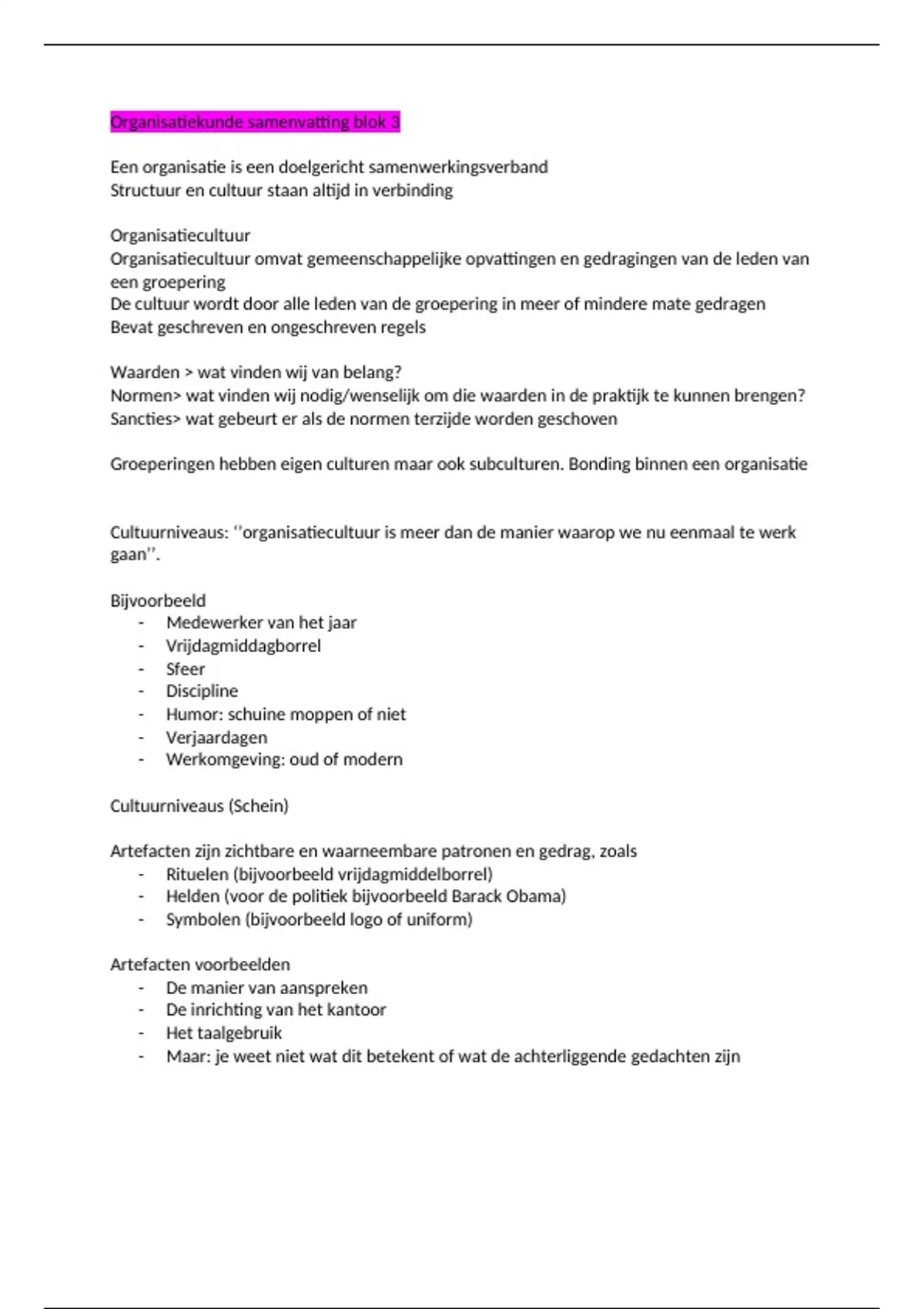 Organisatiecultuur omvat gemeenschappelijke opvattingen en gedragingen van de leden van