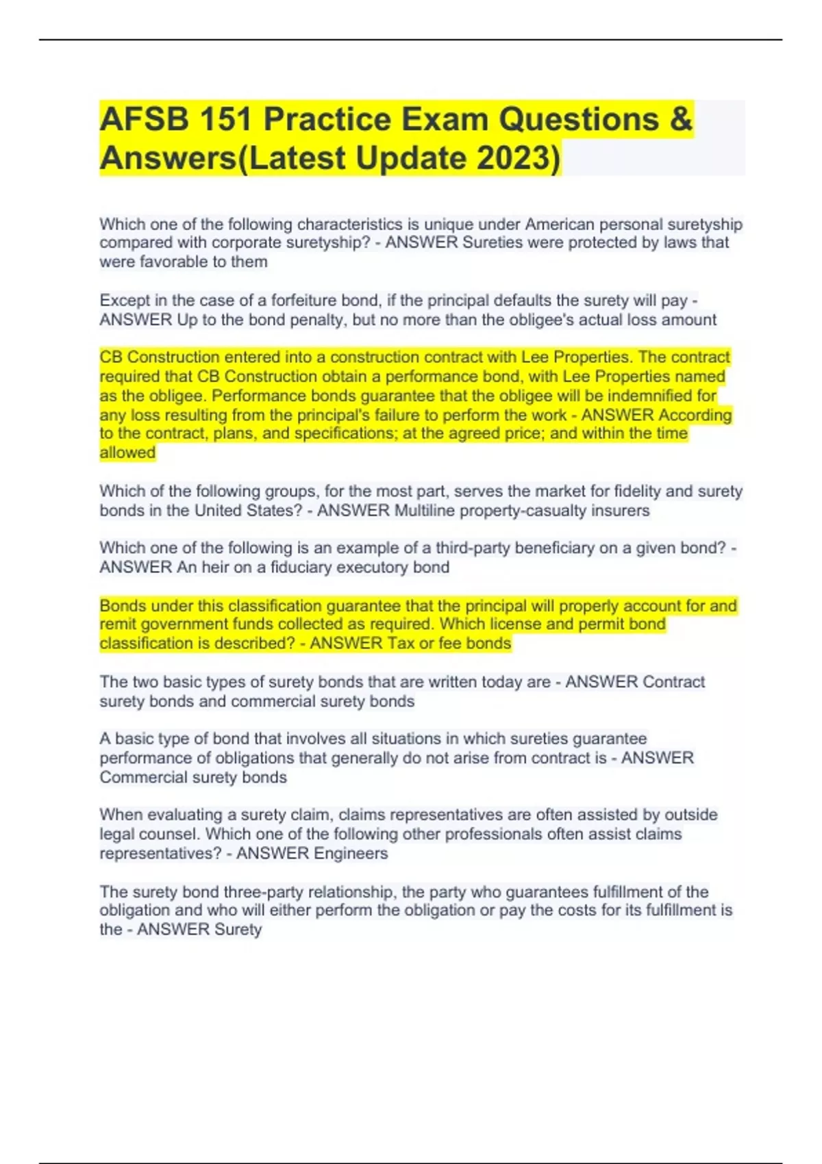 AFSB 151 Practice Exam Questions & Answers(Latest Update 2023)