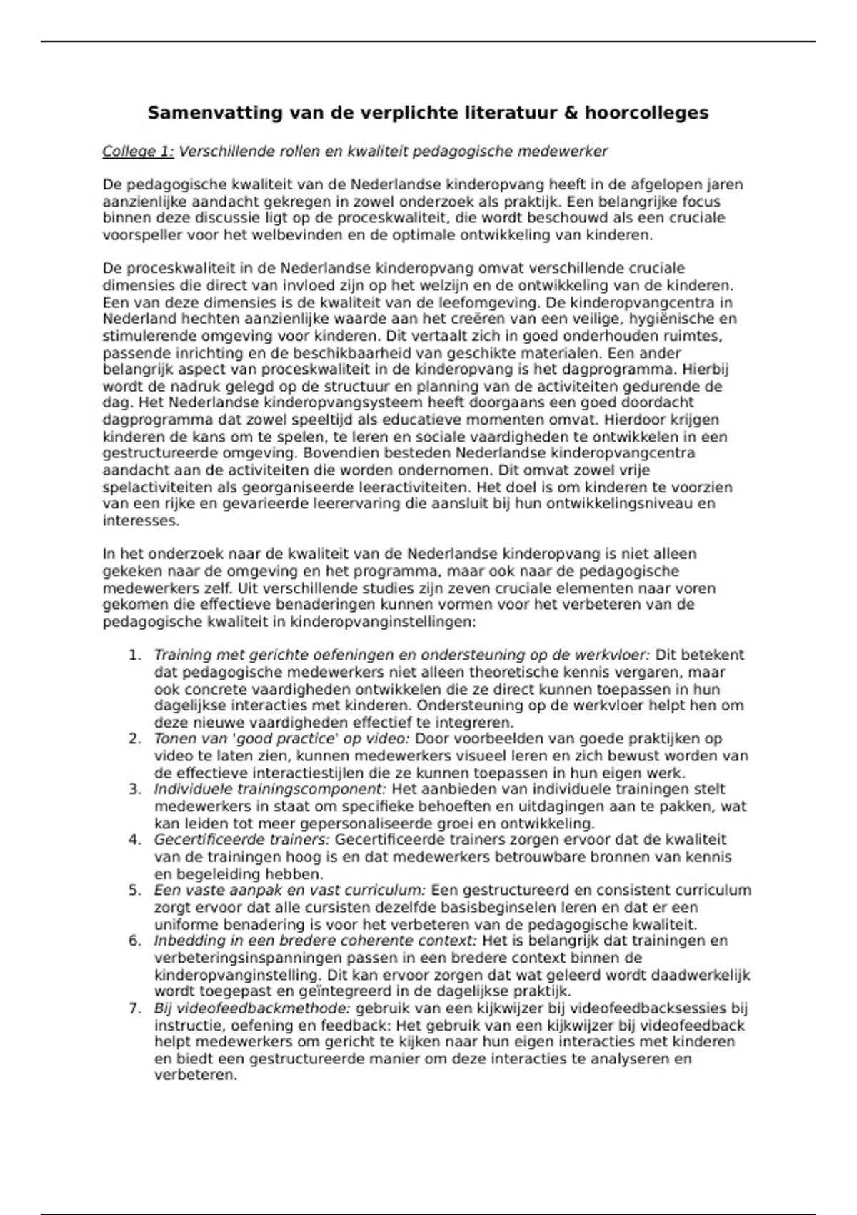 Samenvatting van de verplichte literatuur & hoorcolleges