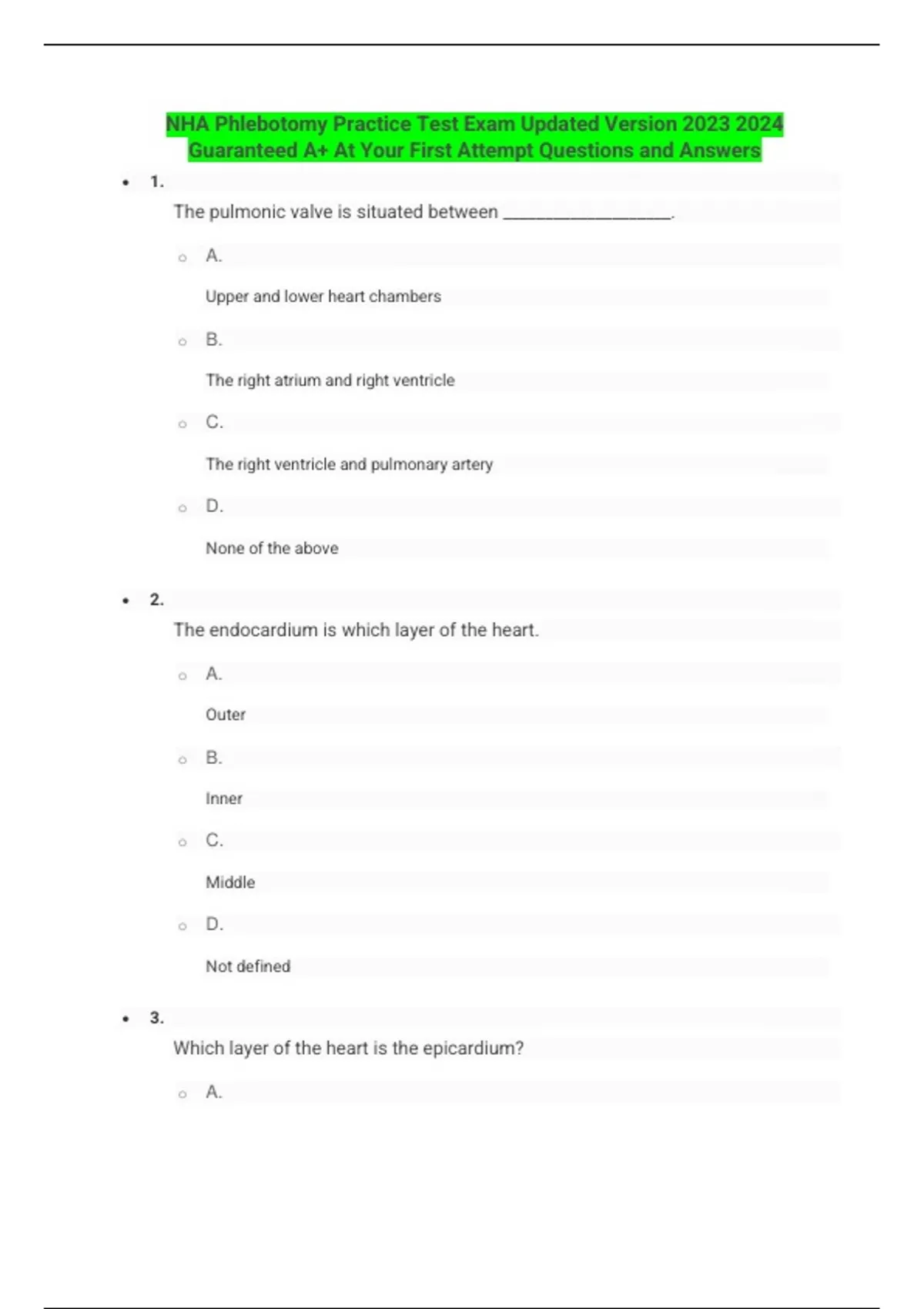 NHA Phlebotomy certification EXAM Updated Version 2023 Questions and Correct Answers Score 100%
