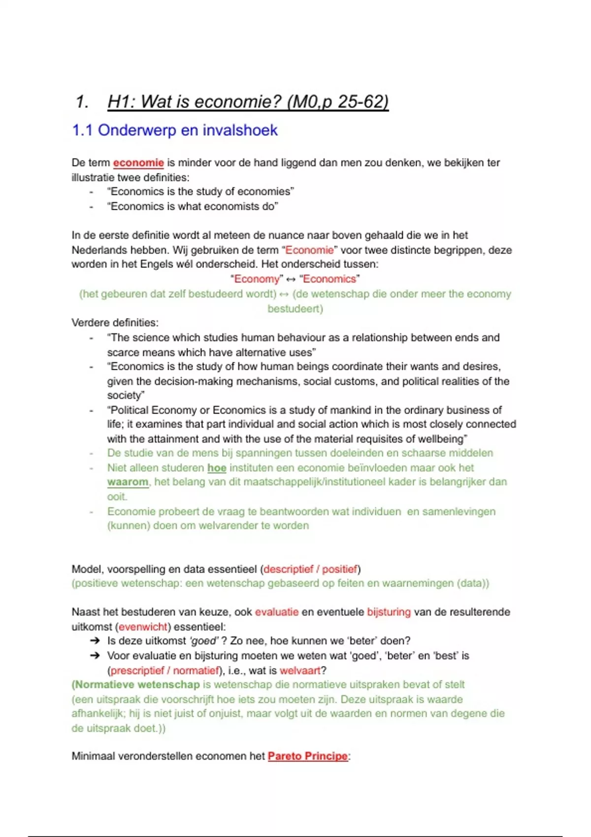 1. H1: Wat is economie? (M0,p 25-62)
