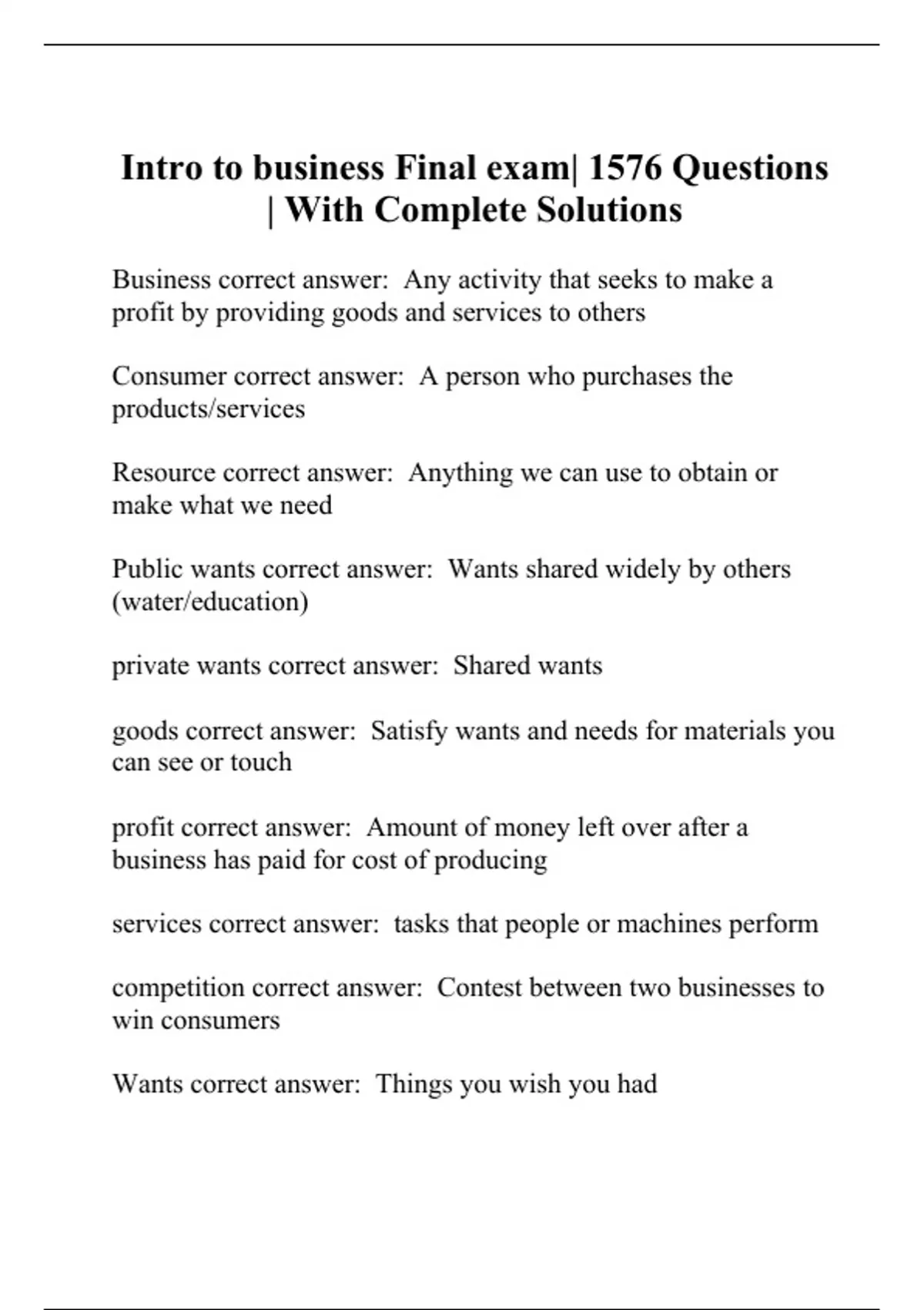 Intro to business Final exam| 1576 Questions | With Complete Solutions