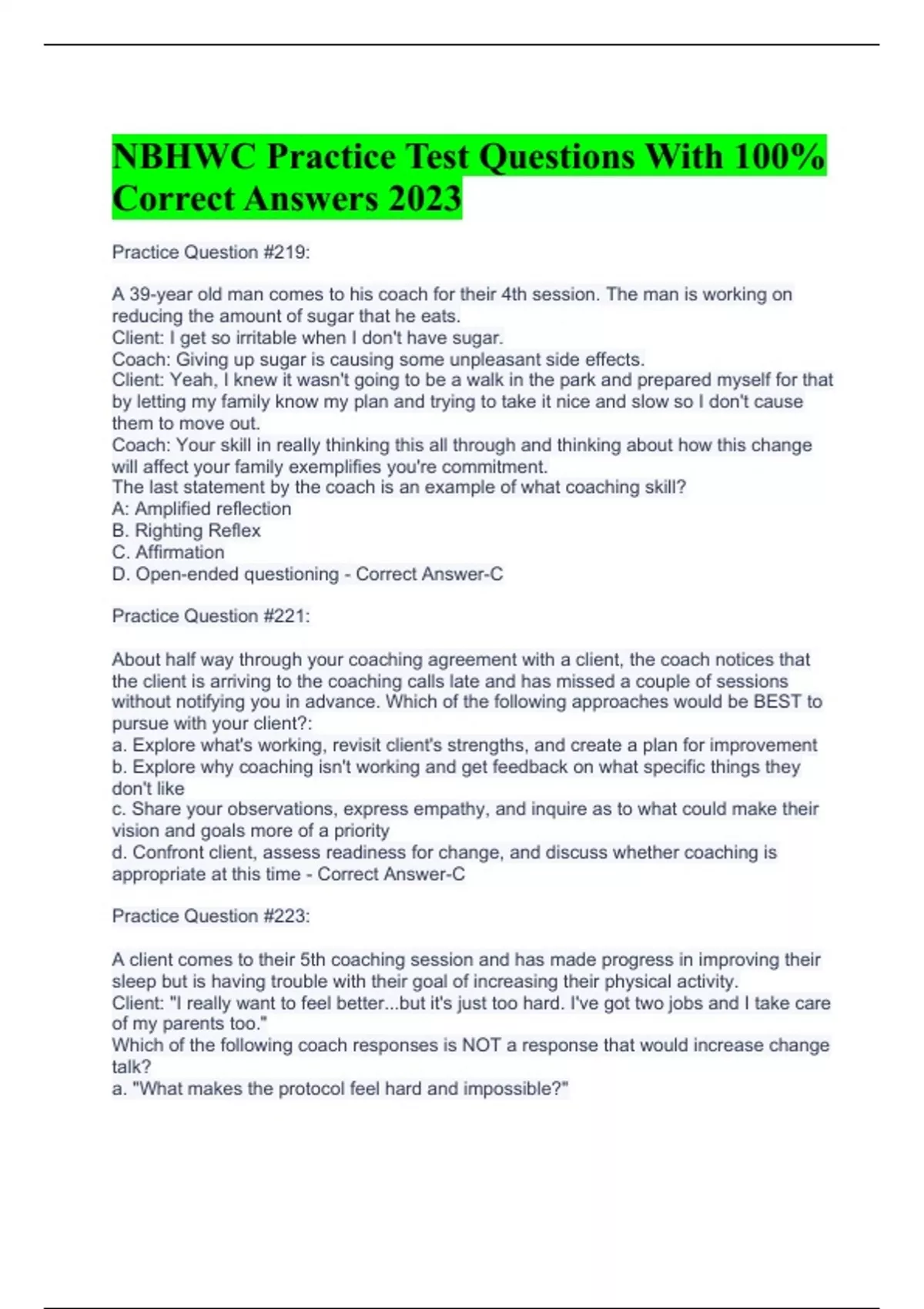 NBHWC Practice Test Questions With 100% Correct Answers 2023