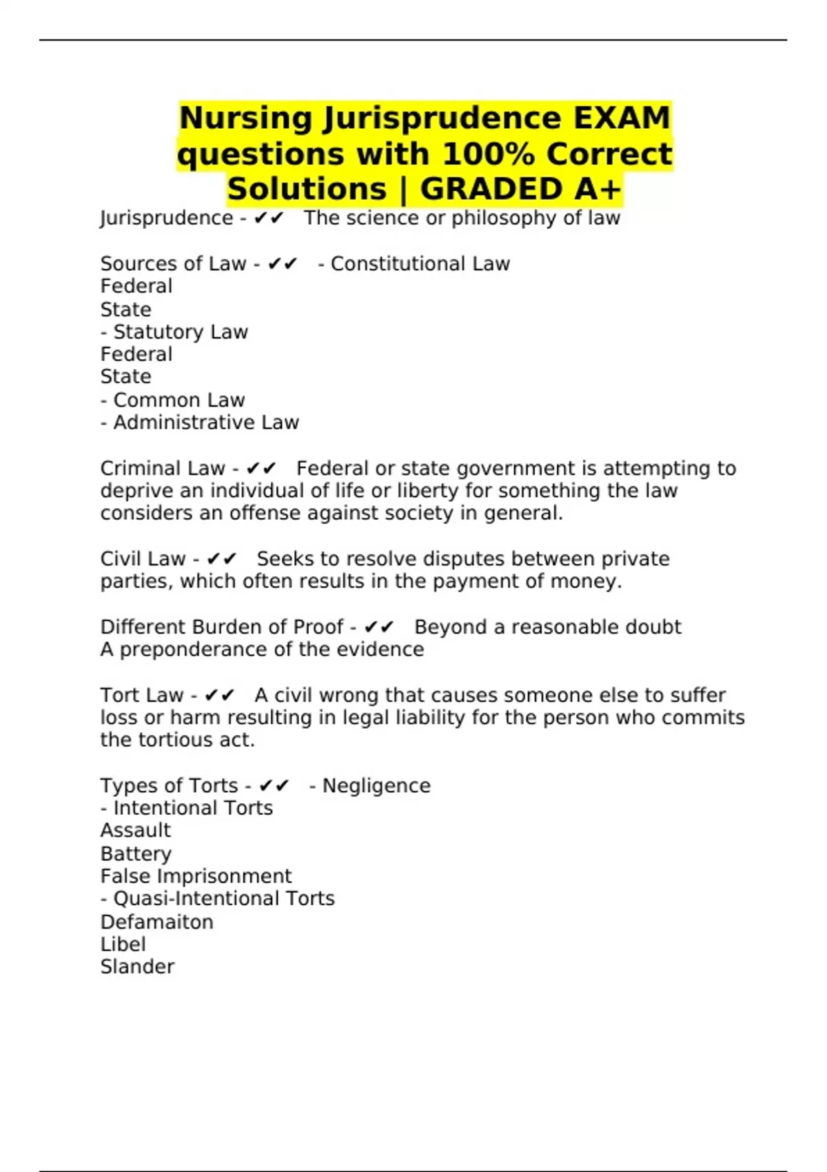 Nursing Jurisprudence EXAM questions with 100% Correct Solutions | GRADED A+
