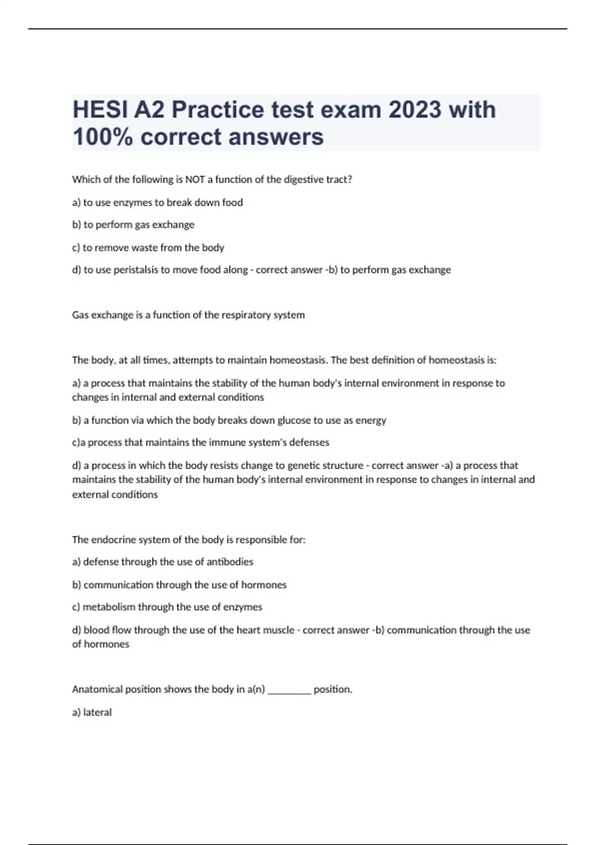 d) to use peristalsis to move food along - correct answer -b) to perform gas exchange