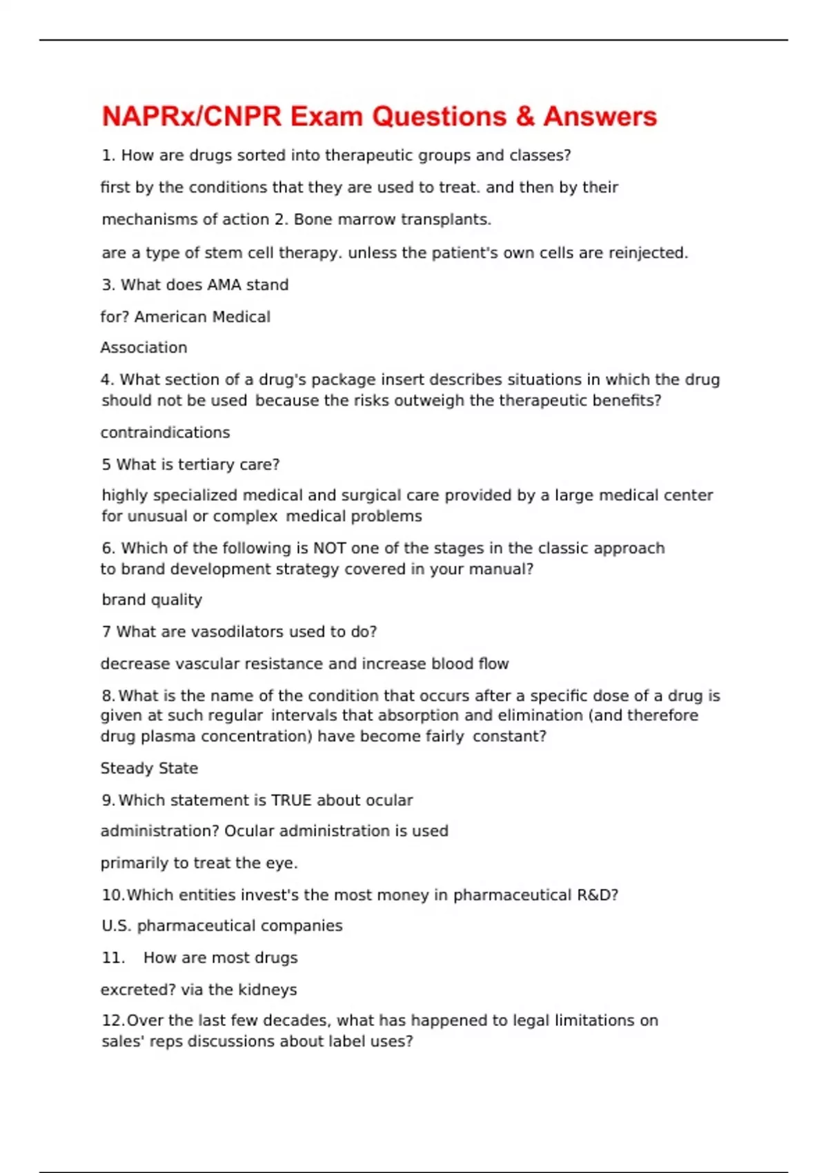 NAPRx/CNPR Exam & Answers