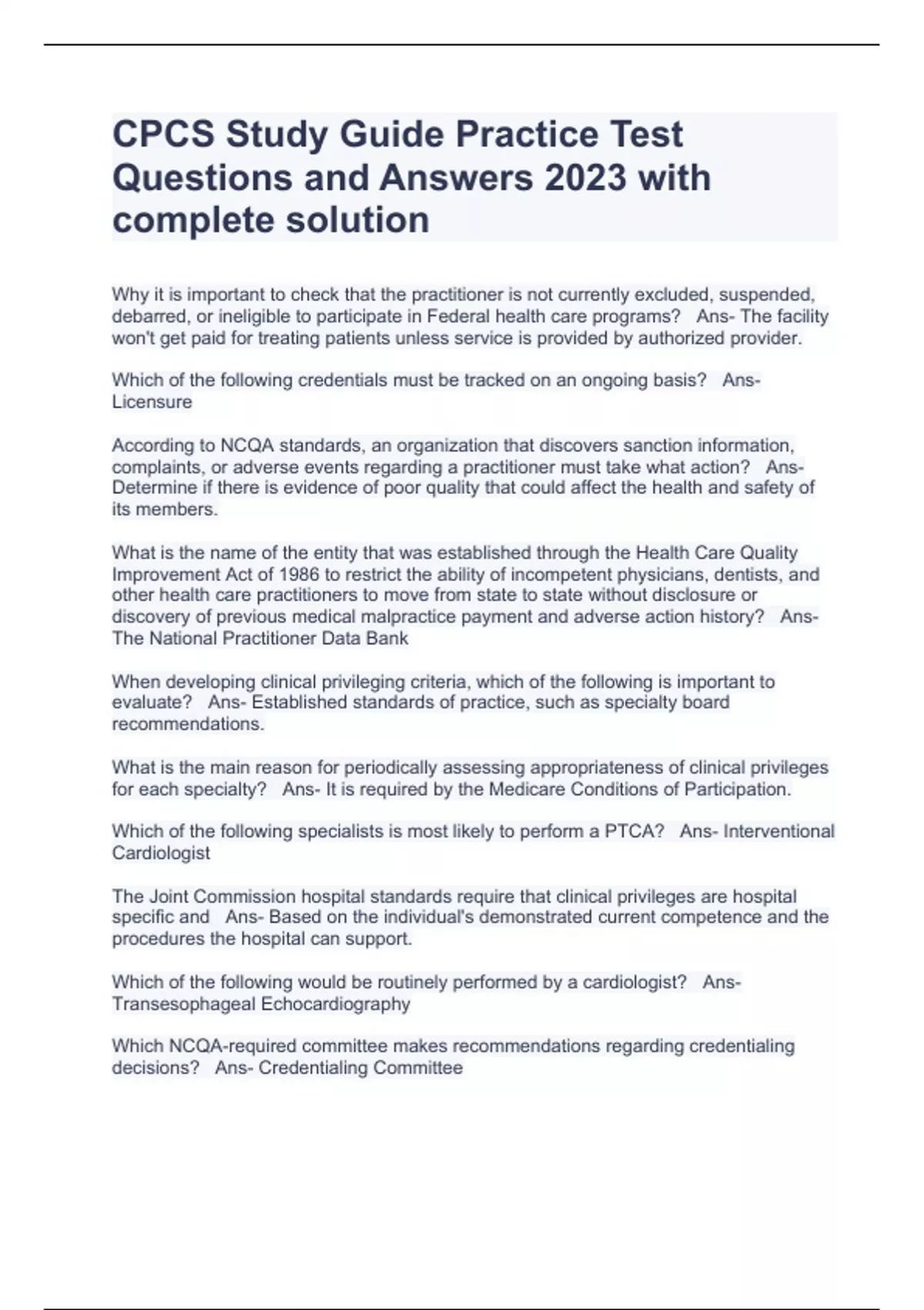 CPCS Study Guide Practice Test Questions and Answers 2023 with complete solution