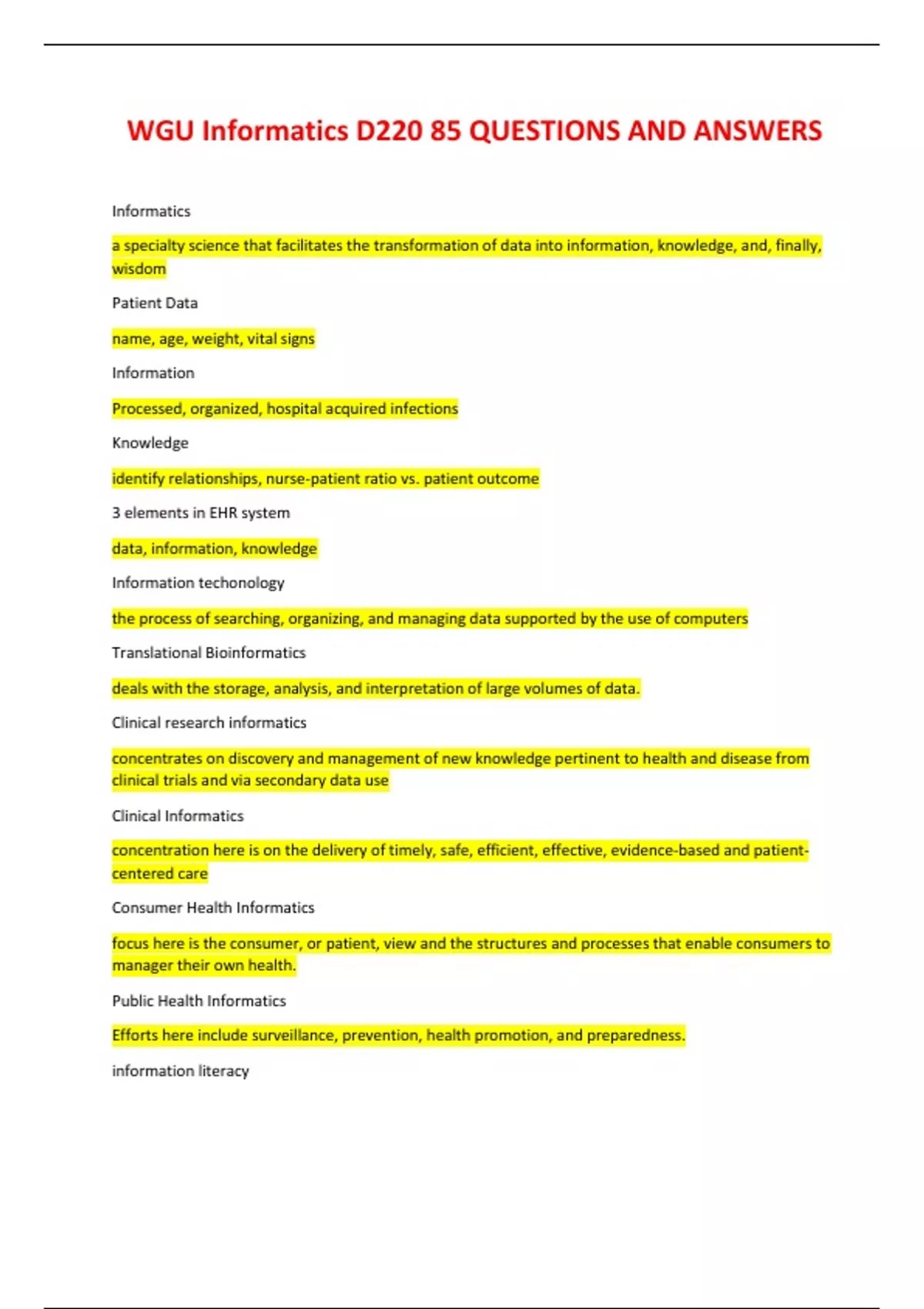 WGU Informatics D220 85 QUESTIONS AND ANSWERS
