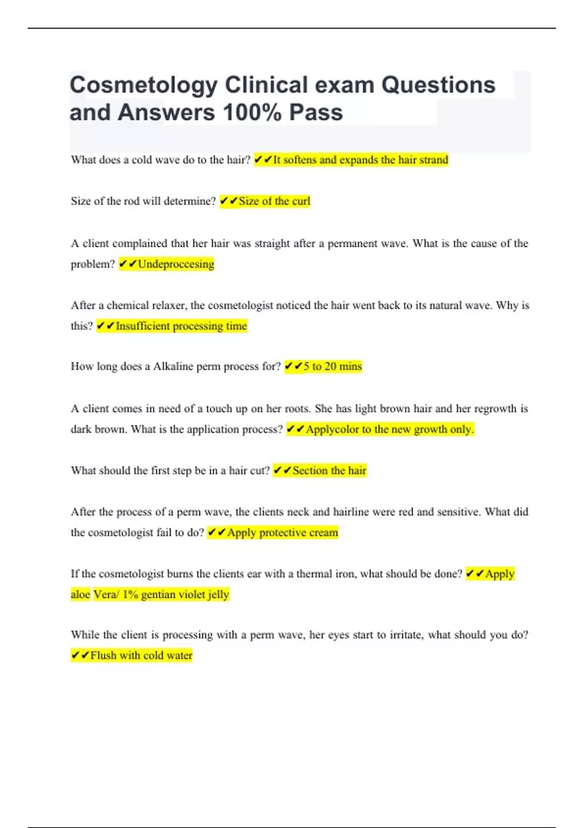 Cosmetology Clinical exam Questions and Answers 100% Pass