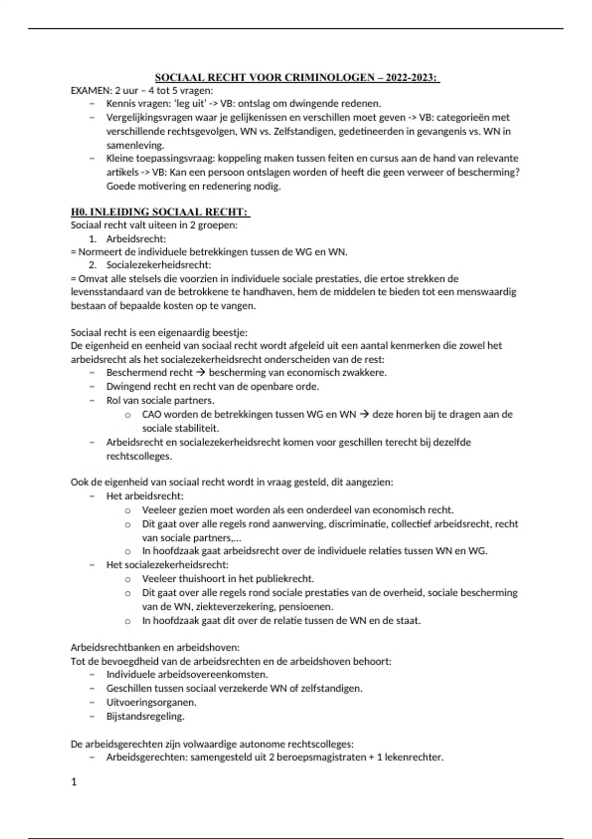 SOCIAAL RECHT VOOR CRIMINOLOGEN – 2022-2023: