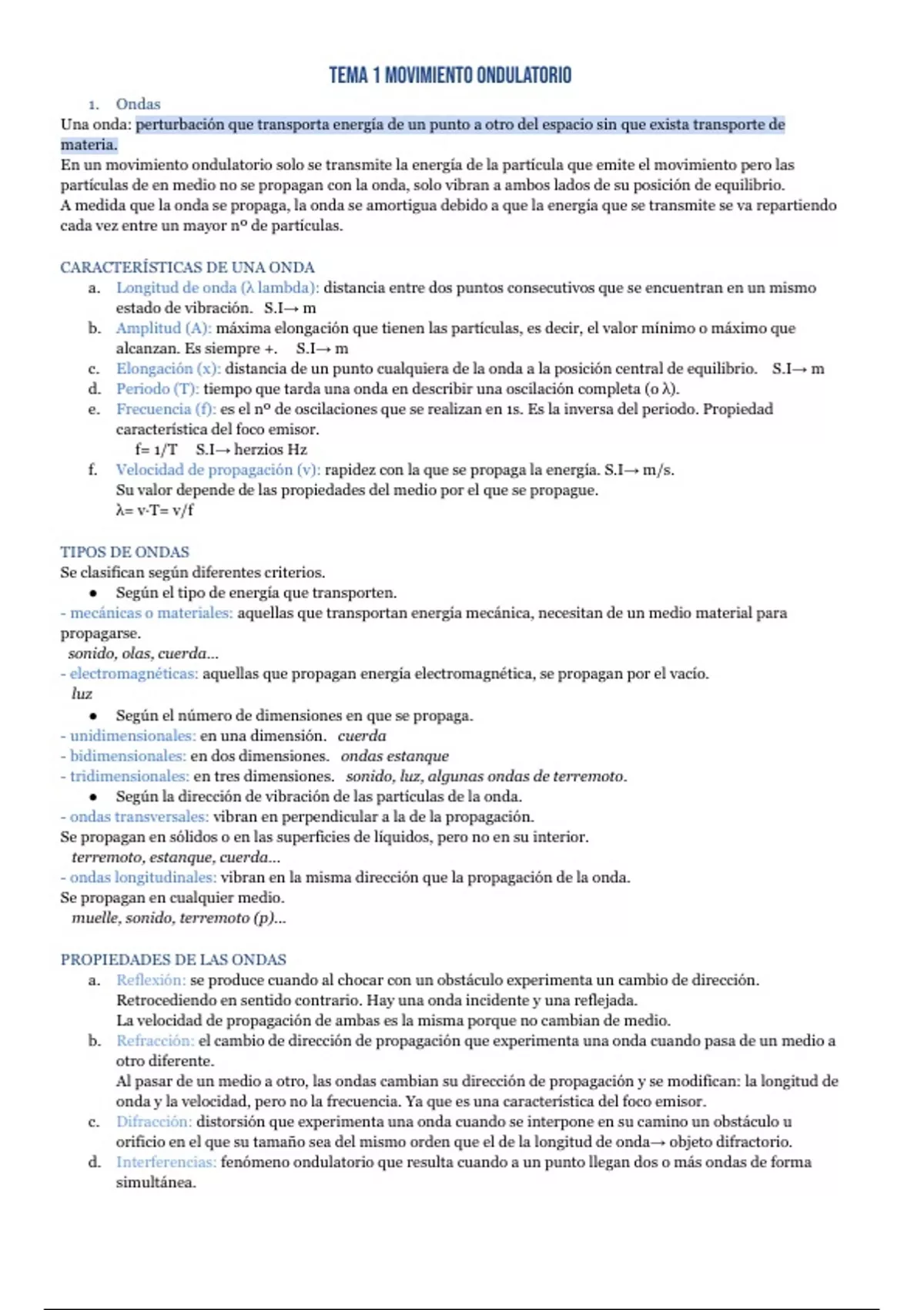 TEMA 1 MOVIMIENTO ONDULATORIO