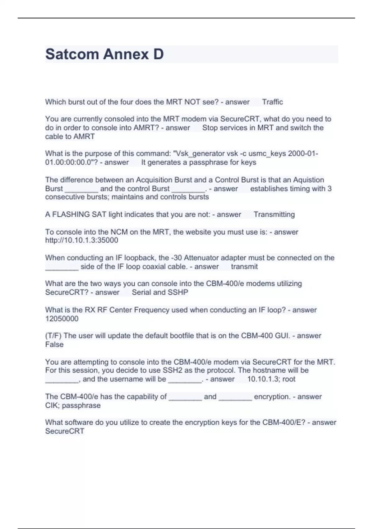 Satcom Annex D Questions with correct Answers 2023