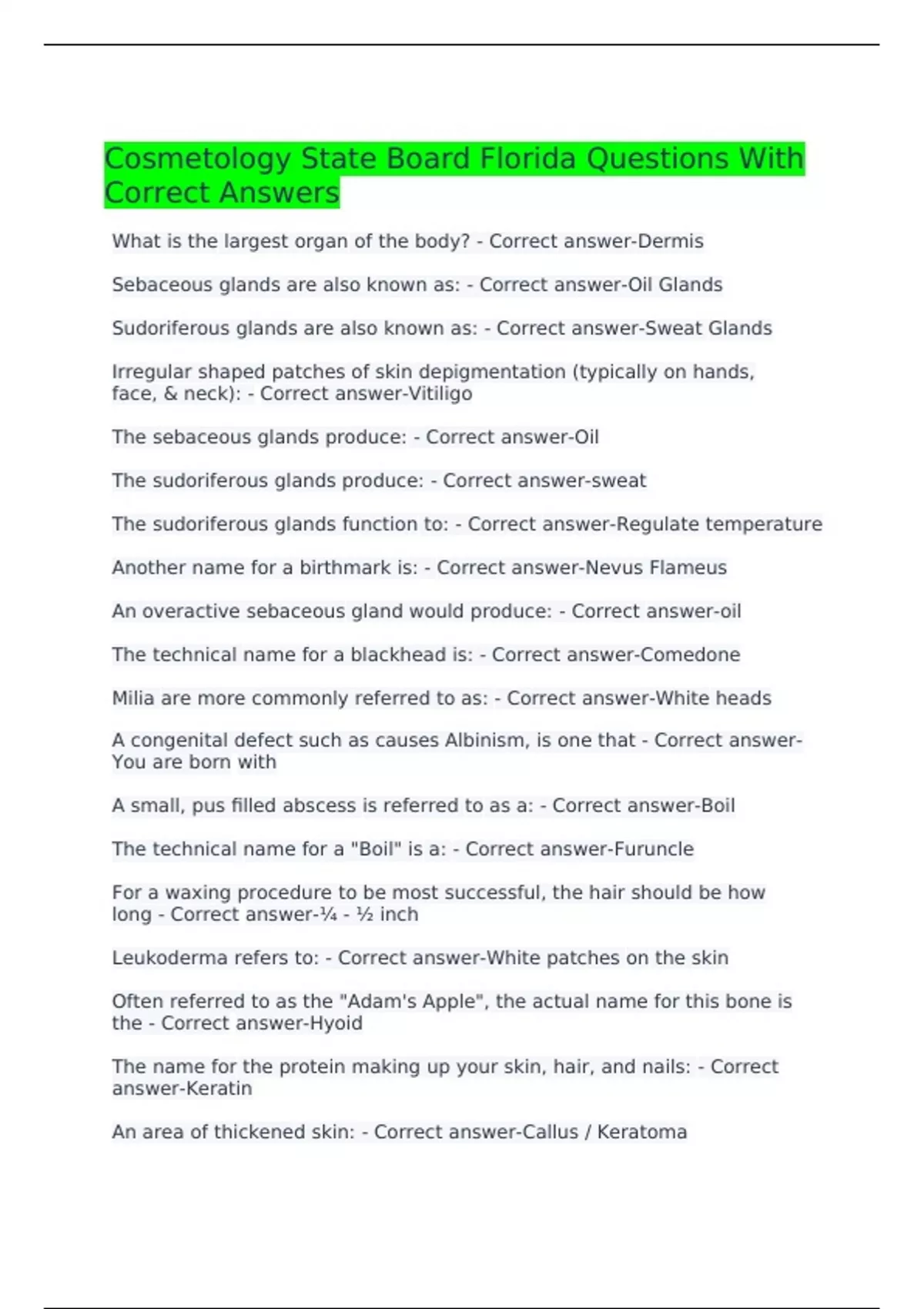 Florida Cosmetology /Cosmetology State Board Exam Bundle (GRADED A)