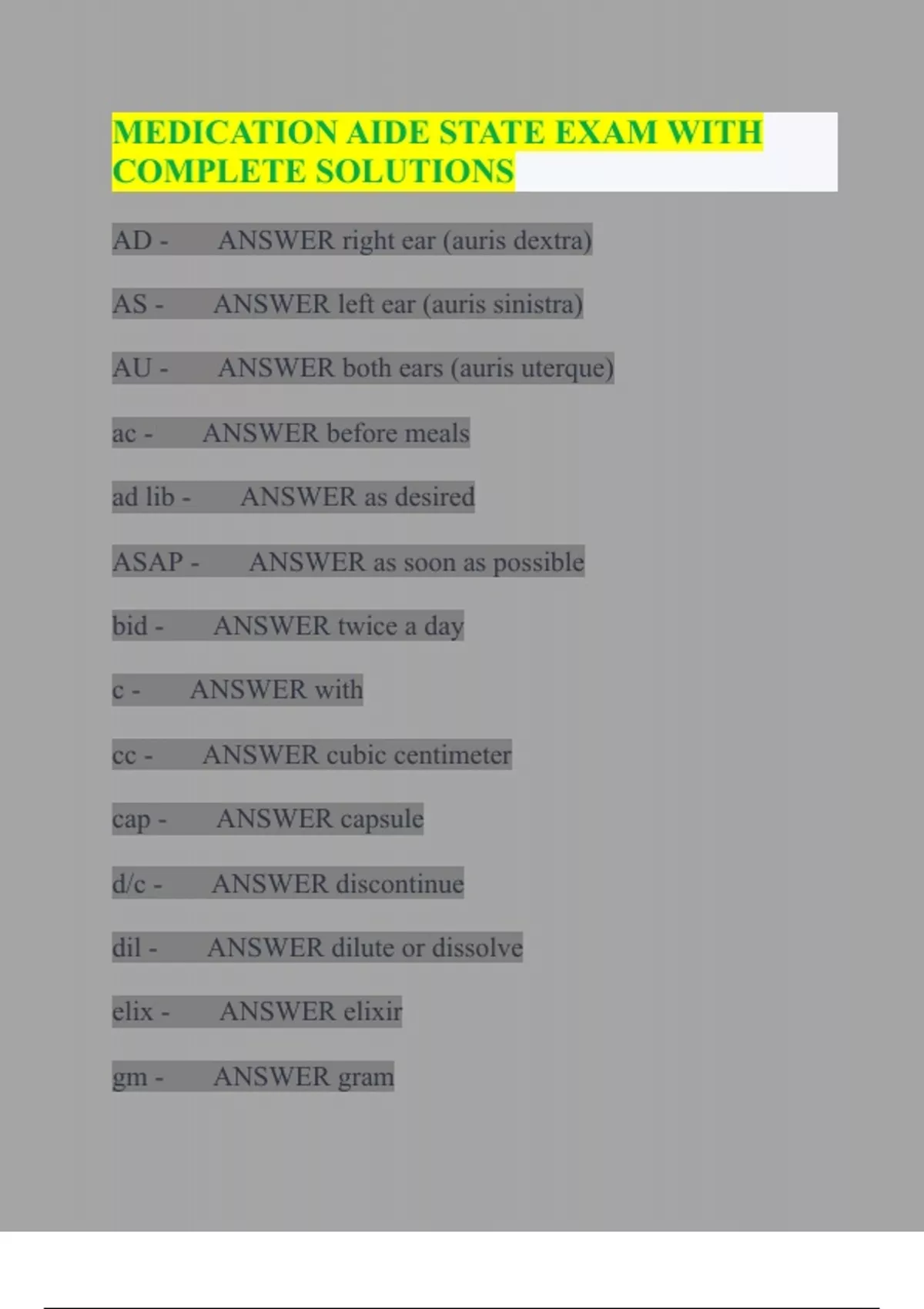 MEDICATION AIDE STATE EXAM WITH COMPLETE SOLUTIONS