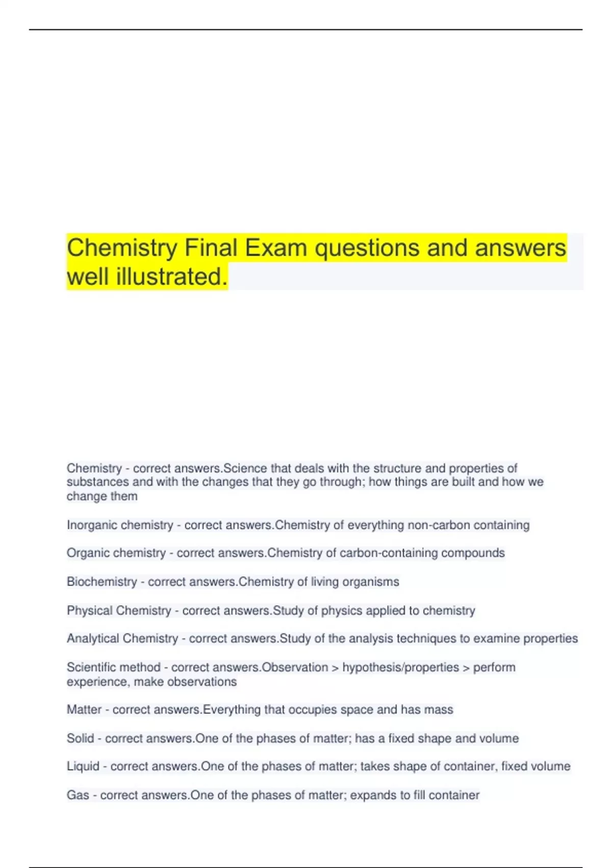 Chemistry Final Exam questions and answers well illustrated.
