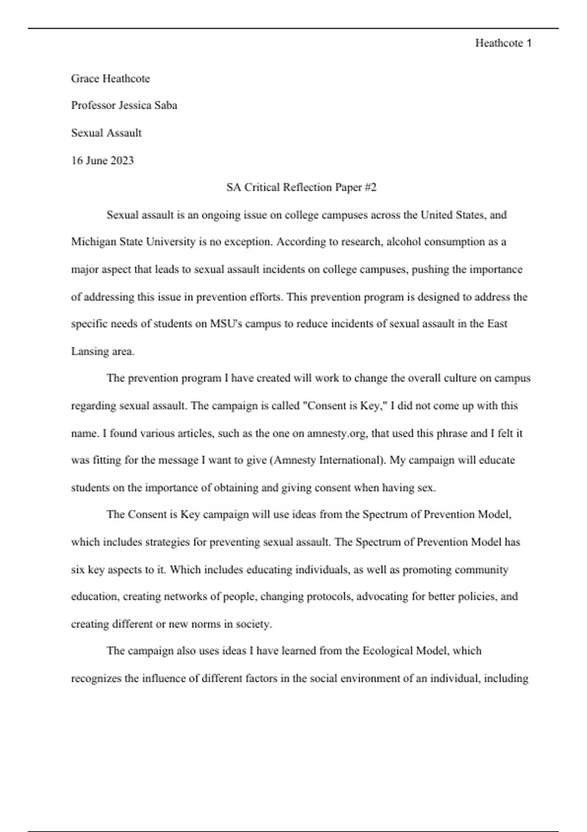 Sexual Assault Critical Reflection Paper #2