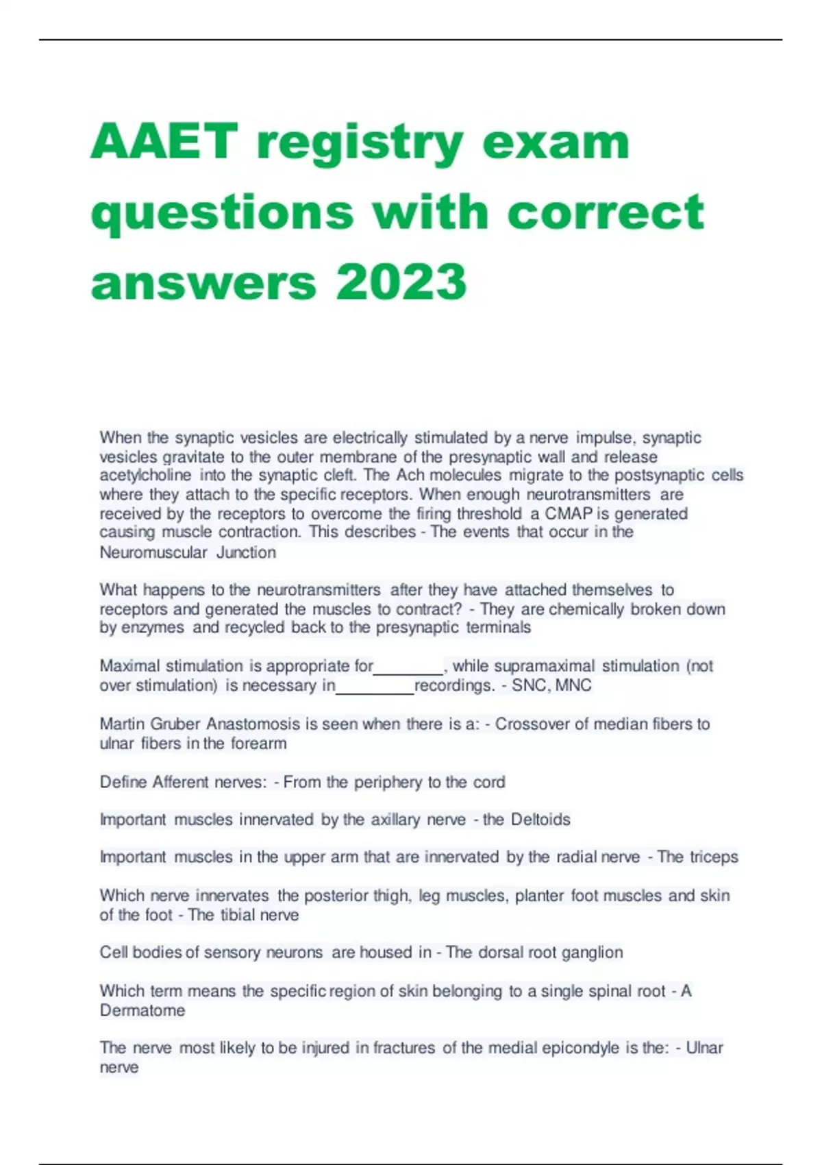 AAET registry exam questions with correct answers 2023