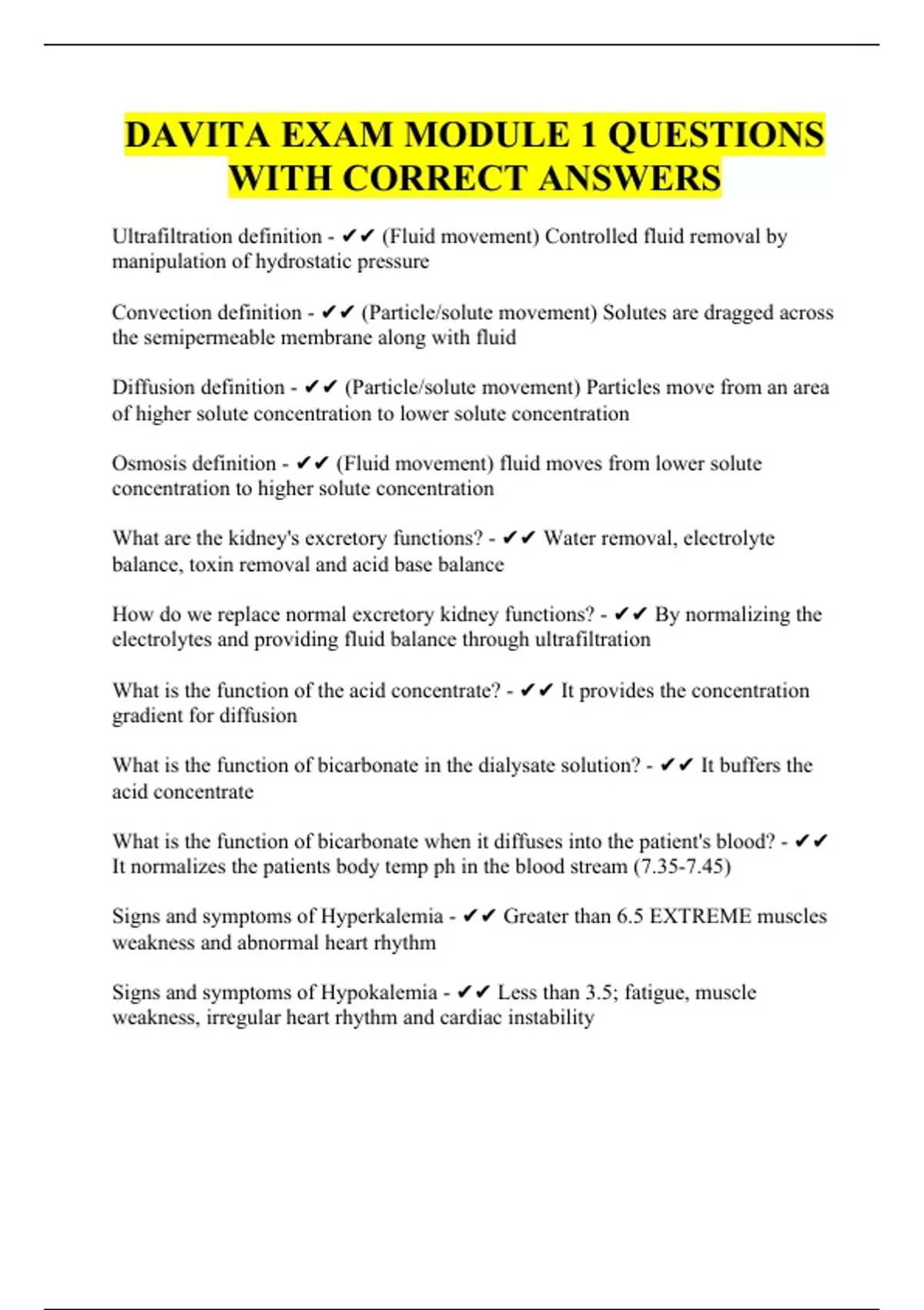 DAVITA EXAM MODULE 1 QUESTIONS WITH CORRECT ANSWERS