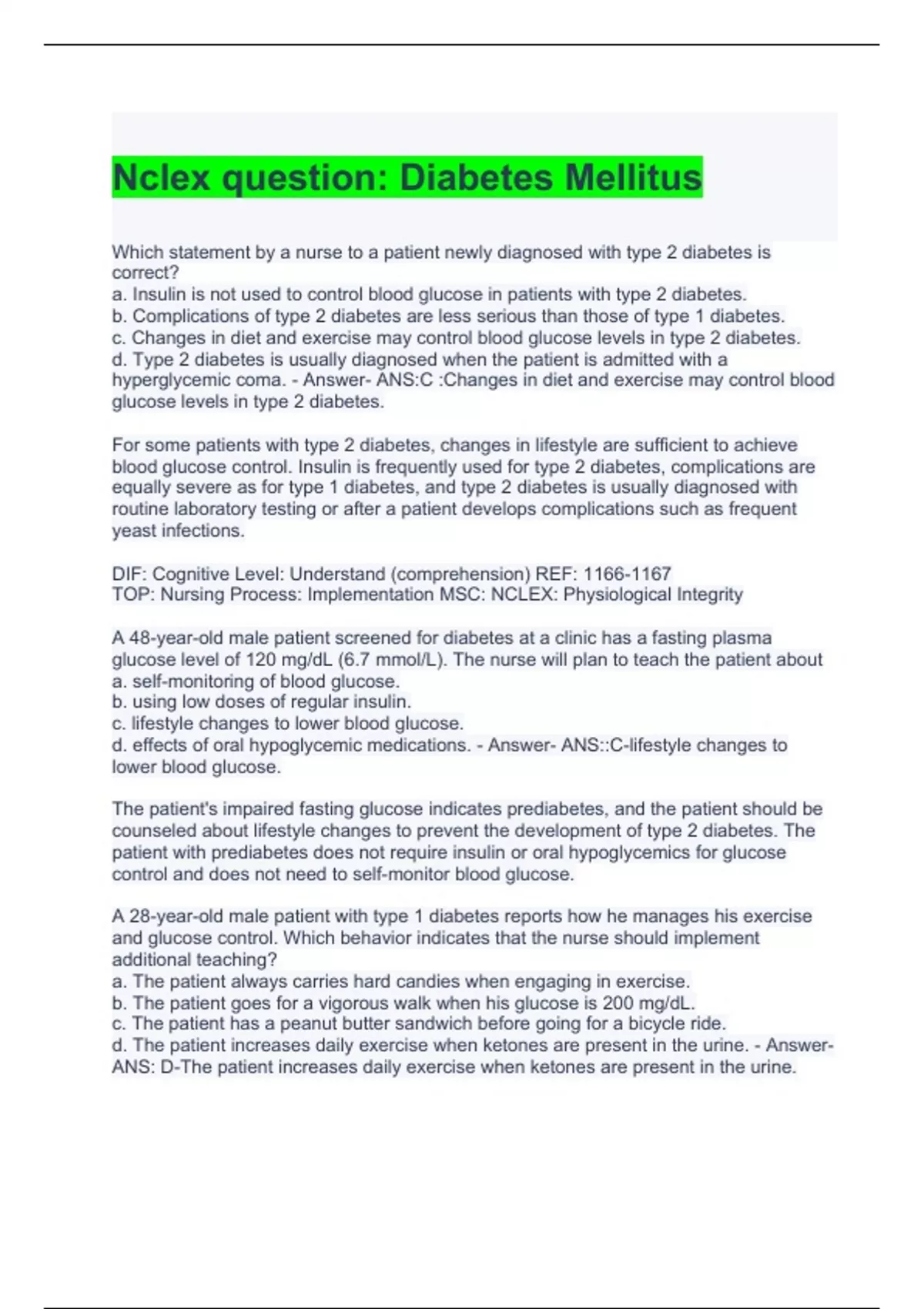 Diabetes Mellitus NCLEX Exam Bundle