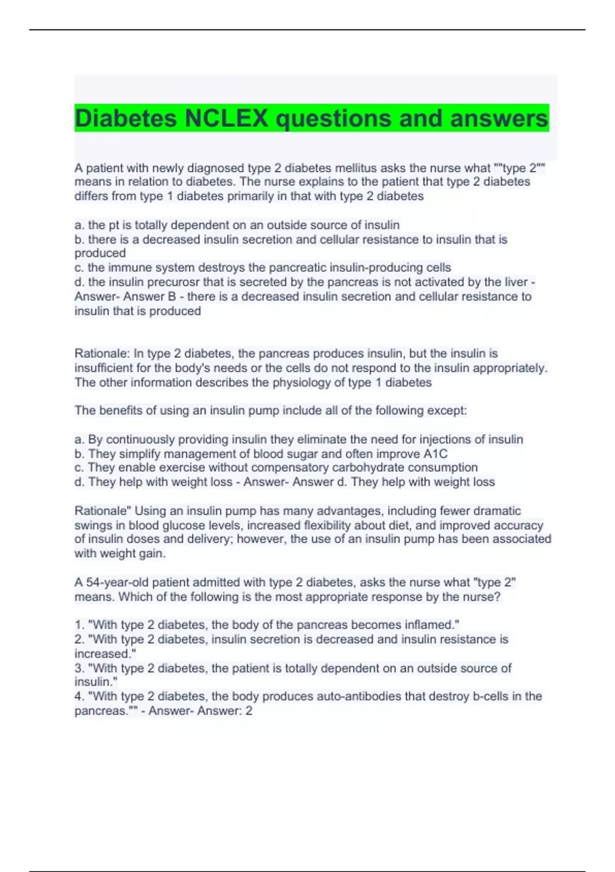 Diabetes NCLEX questions and answers