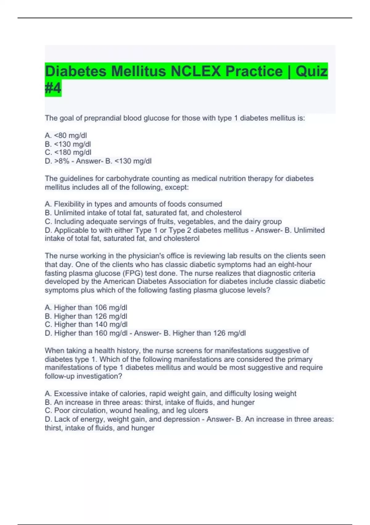 Diabetes Mellitus NCLEX Practice Quiz #4-solved