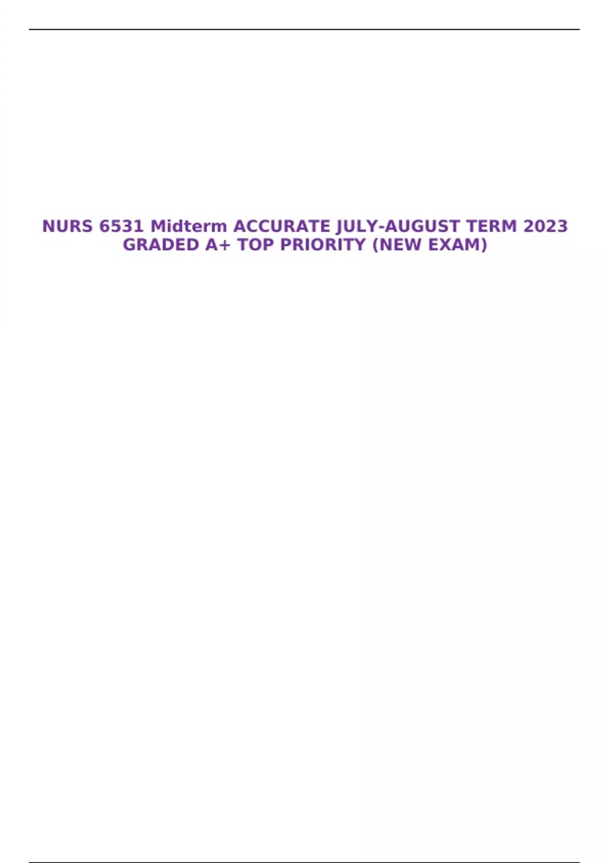 NURS 6531 Midterm ACCURATE JULY-AUGUST TERM 2023 GRADED A+ TOP PRIORITY (NEW EXAM)