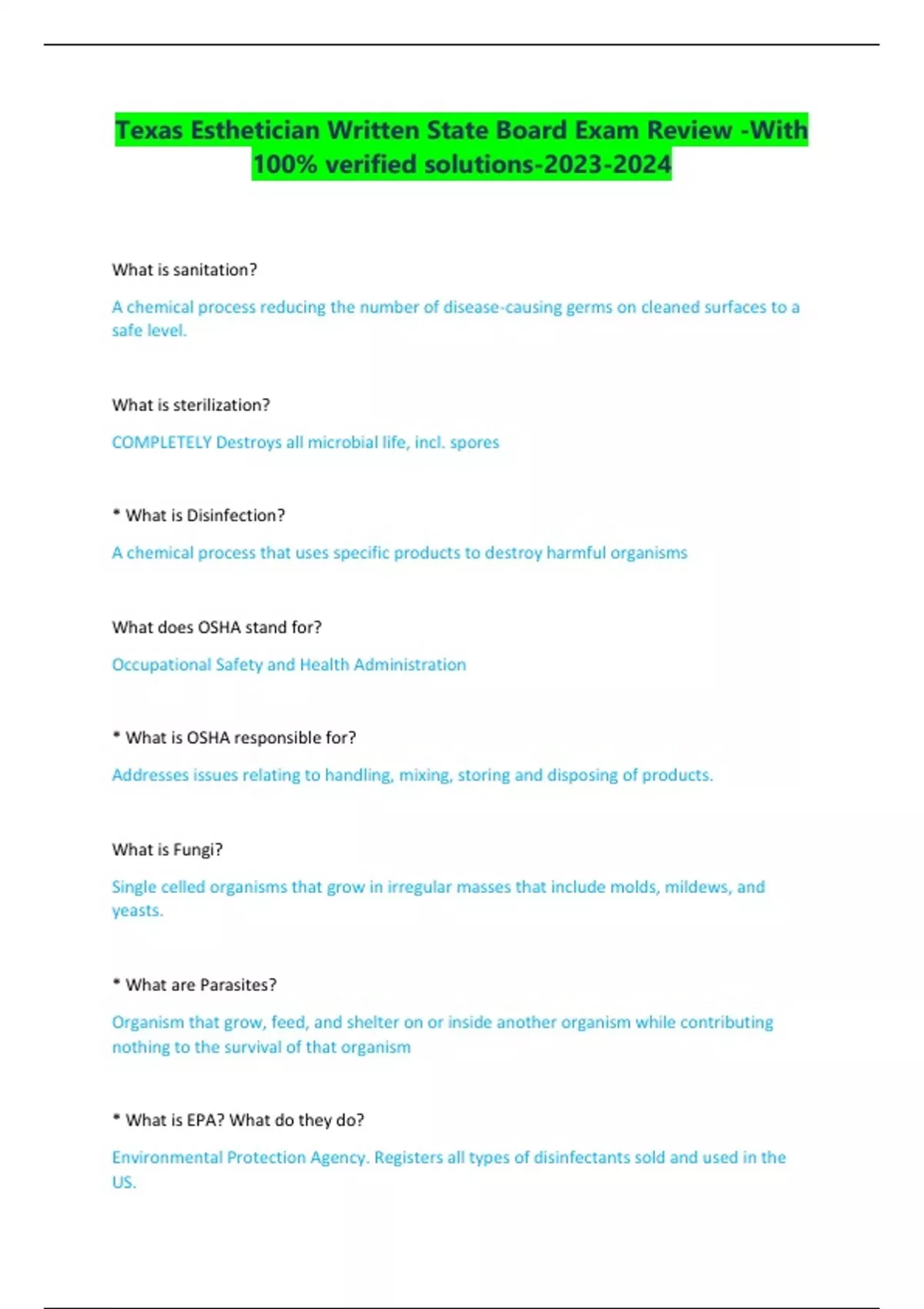 Texas Esthetician Written State Board Exam Review -With 100% verified solutions-