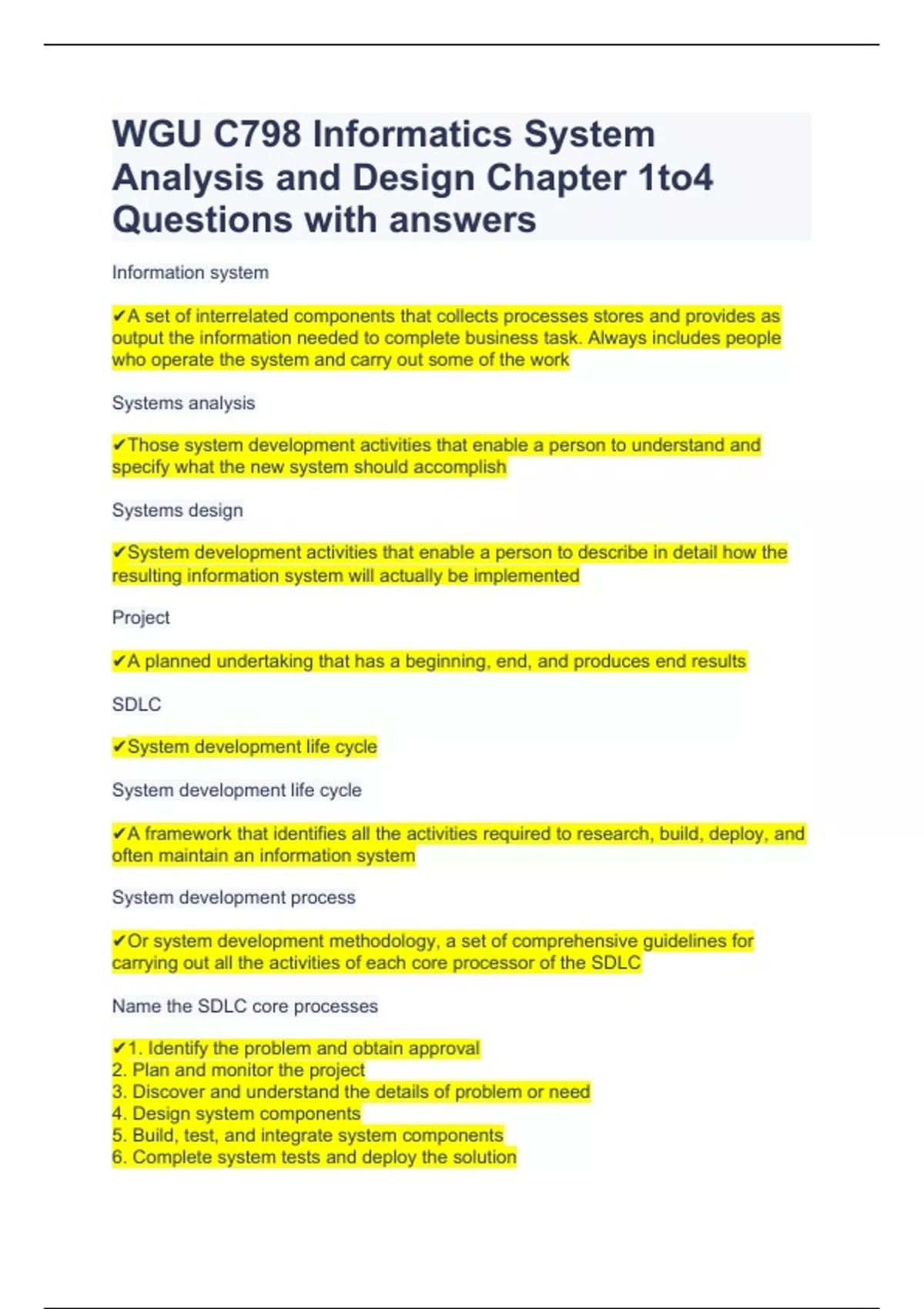 WGU C798 Informatics System Analysis and Design Chapter 1to4 Questions with answers