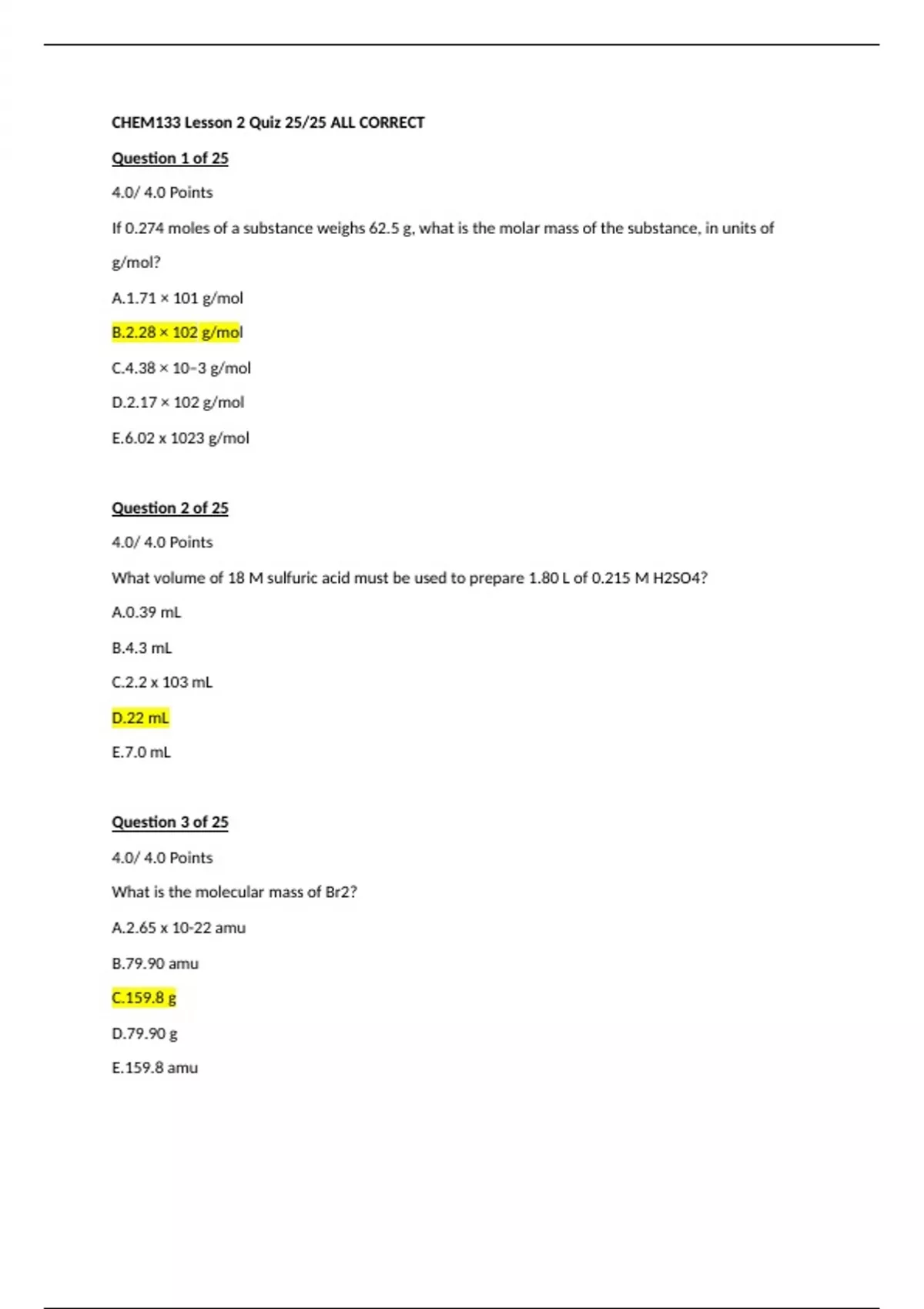CHEM133 Week 4 Lesson 2 Quiz (All Correct)