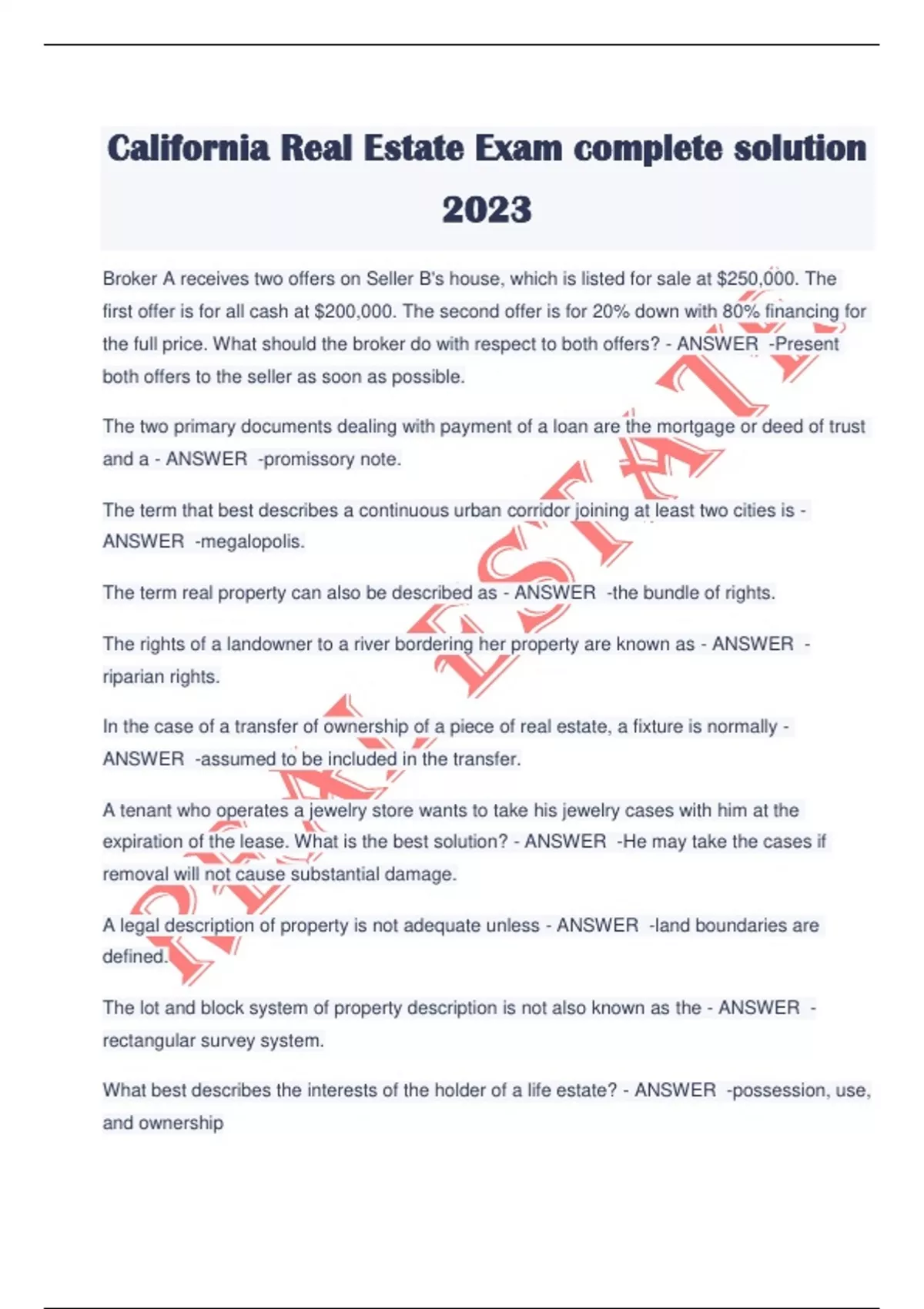 real estate exam complete solution 2023