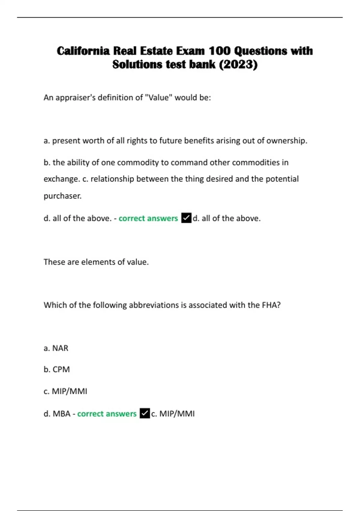 California Real Estate Exam 100 Questions with Solutions test bank (2023