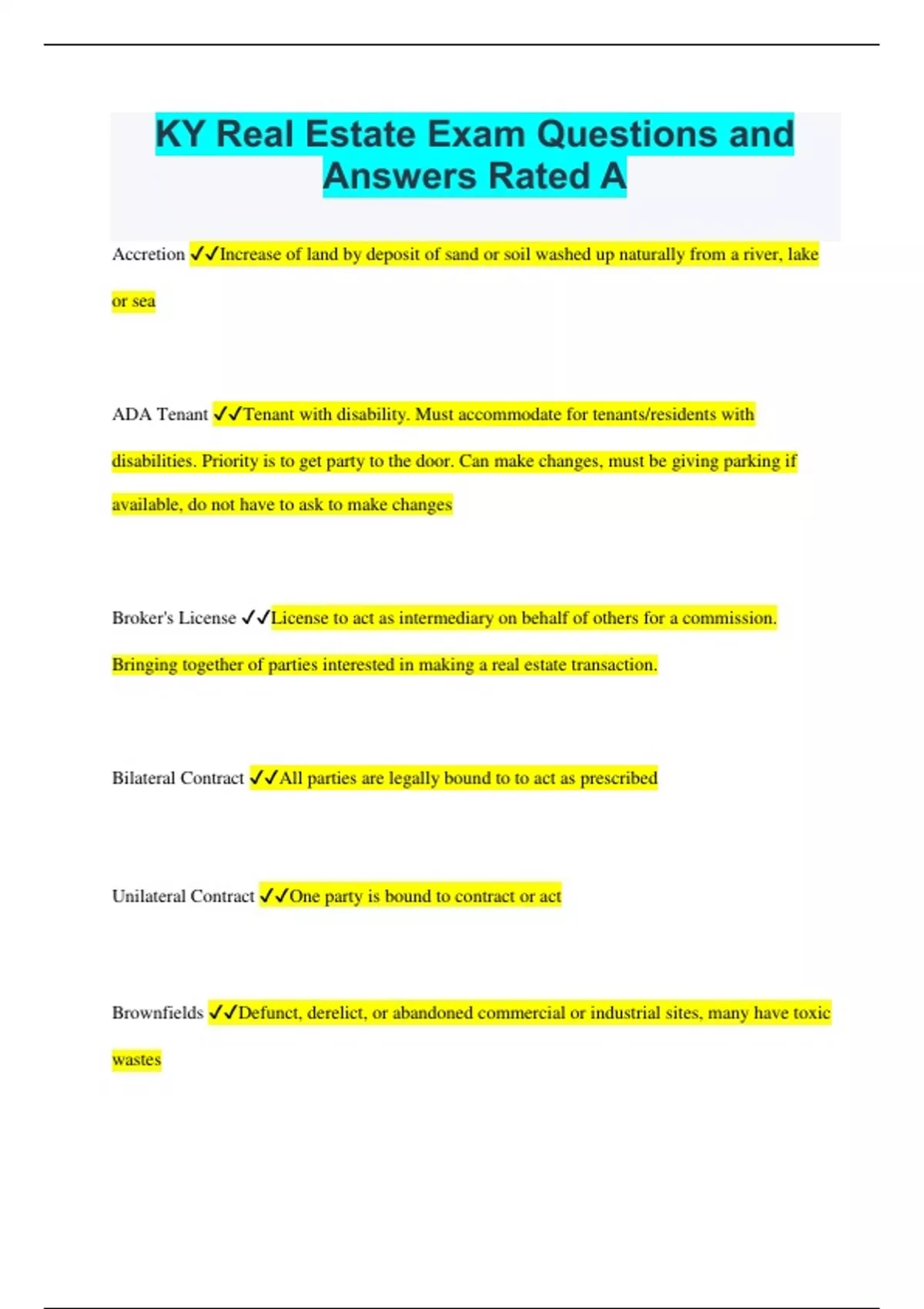 KY Real Estate Exam Questions and corect answers 2023 rated A.