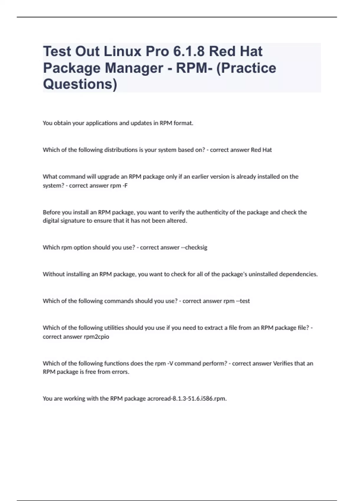 Test Out Linux Pro 6.1.8 Red Hat Package Manager - RPM- (Practice Questions)2023