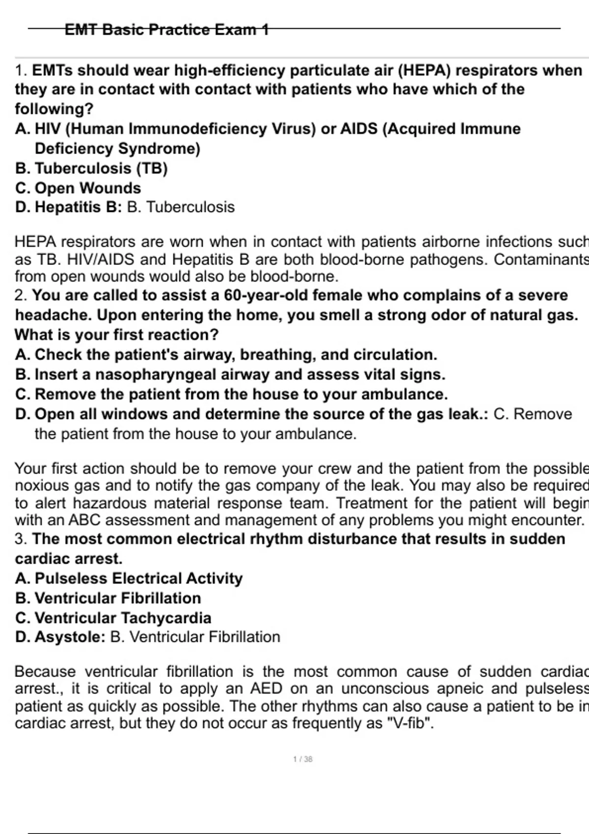 cardiac arrest, but they do not occur as frequently as "V-fib". EMT Basic Practice Exam 1