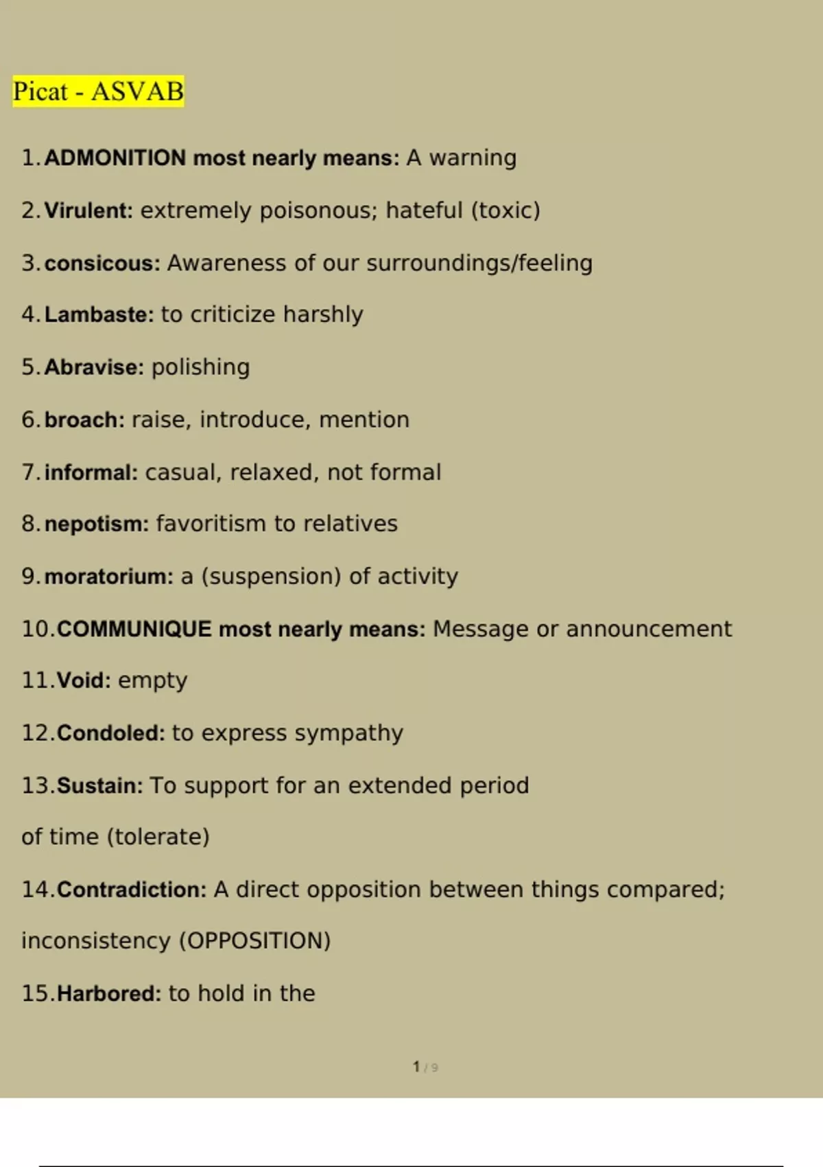 PICAT/ASVAB EXAM Latest 2023/2024[100% correct answers & explanations]