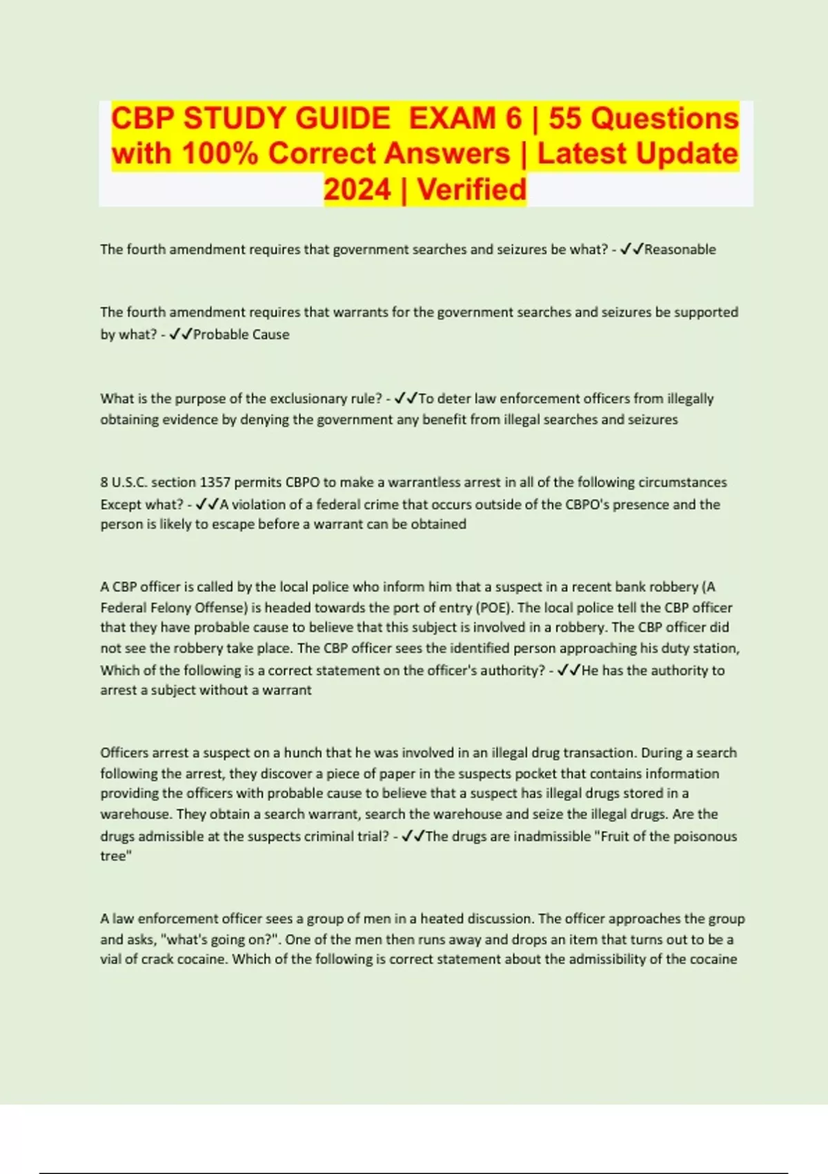 CBP STUDY GUIDE EXAM 6 | 55 Questions with 100% Correct Answers | Latest Update 2024 | Verified